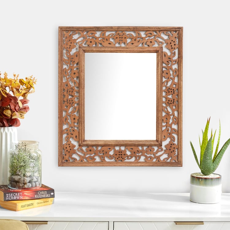 Add a dose of elegance to your decor space with this stunning mirror. Designed with a textured wooden frame, this square mirror can be installed anywhere in your living space and it for sure reflects your persona.