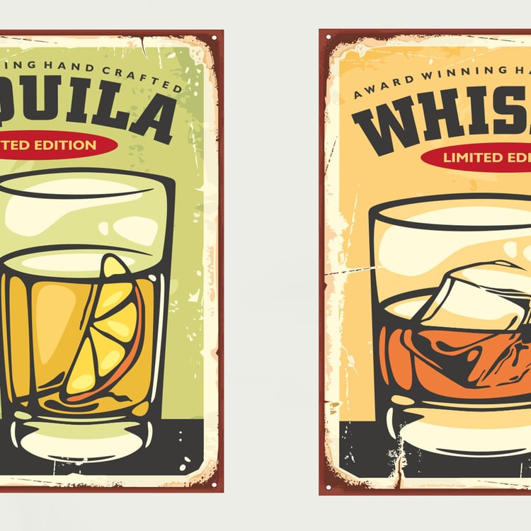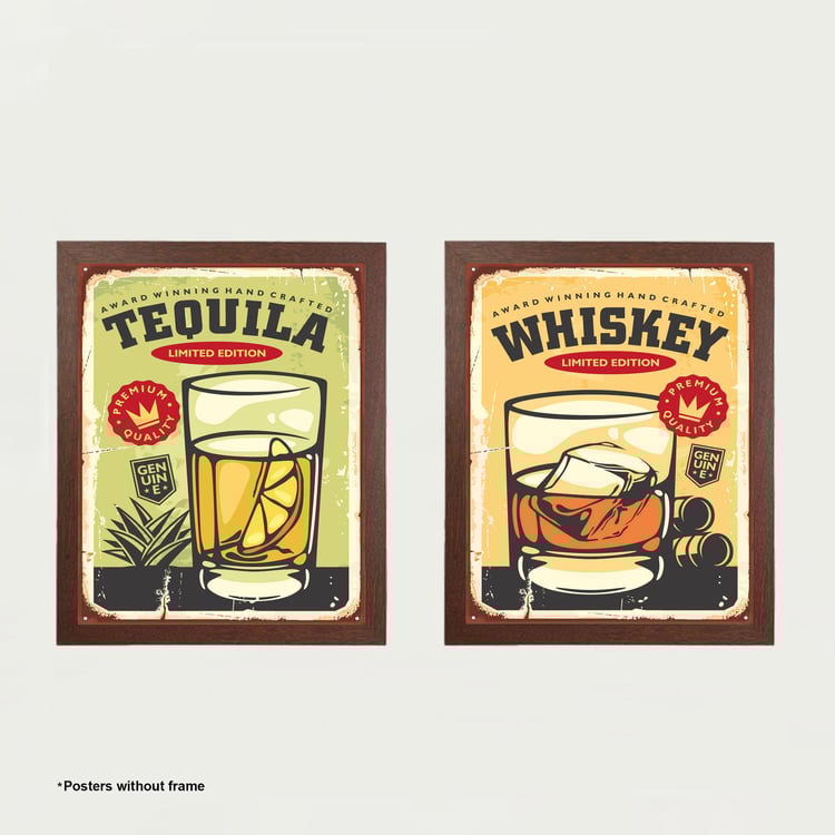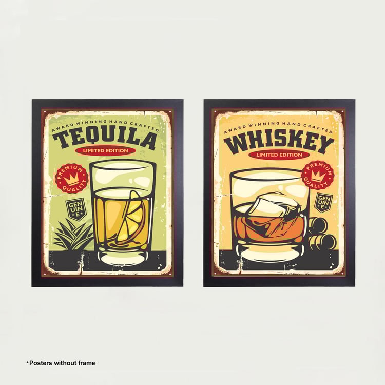 Arsaa Food Multicolour Whisky Tequila Posters- Set of 2- Paper- 40 x 50 Cm