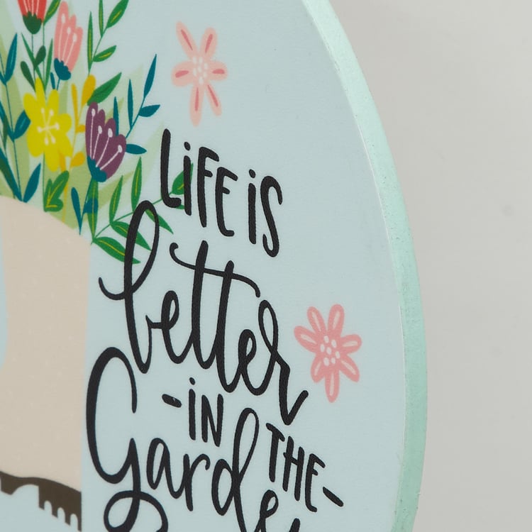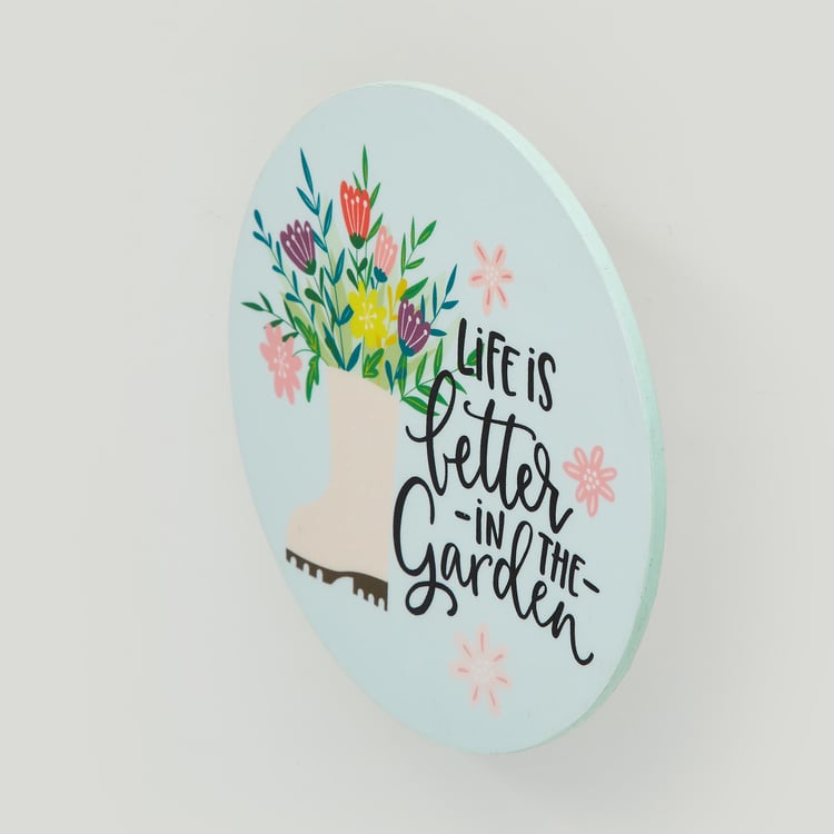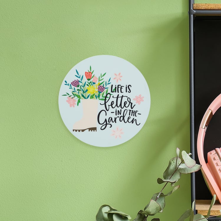 Decorate your garden with our garden accessory and make it look even more bright. Keep your favourite quotes around you with this picture frame that comes with a cool inspirational quote. With a round shape and a convenient hook for hanging, this frame can easily uplift the look of your home front. To add a zest of liveliness to the frame, it is enhanced with little artwork to it.