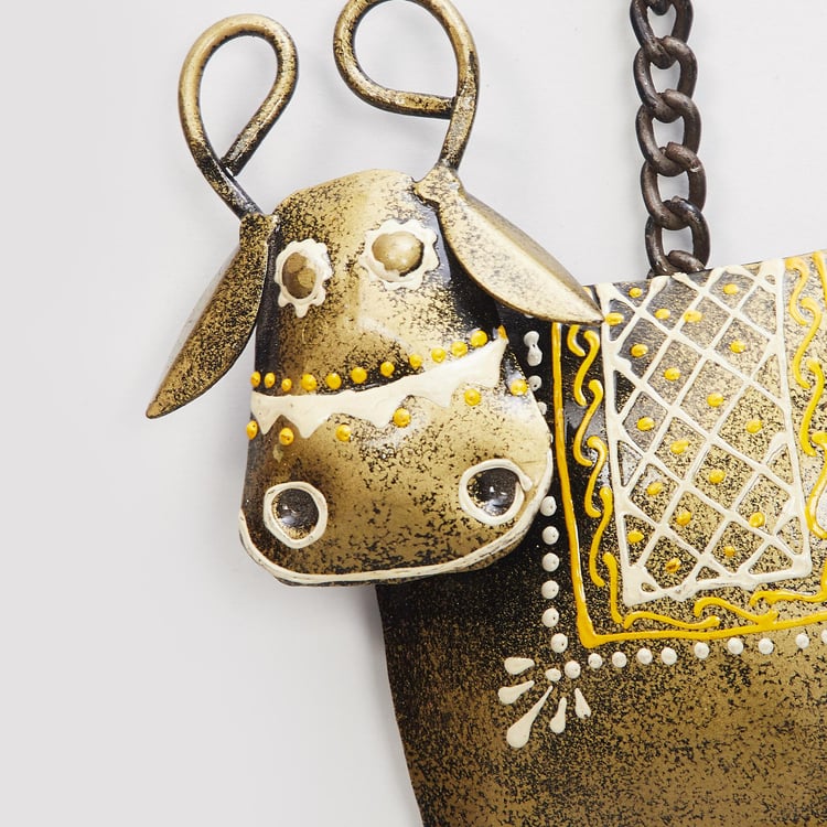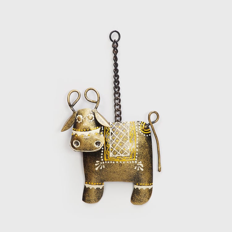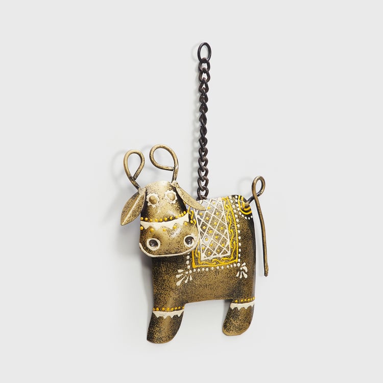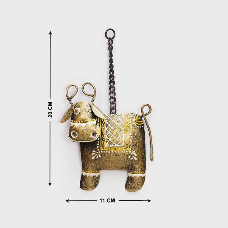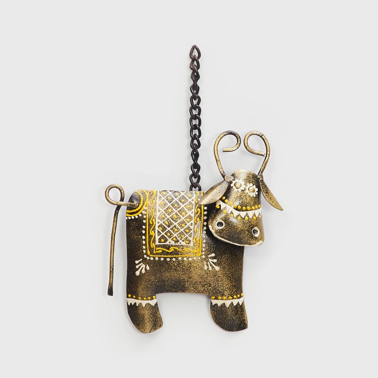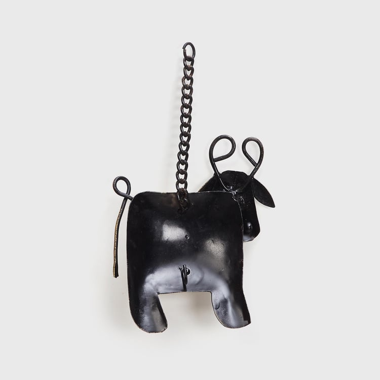 Enhance your decor by adding this cow with a hanging bell. It is made from powder-coated iron to prevent rusting and enhance its durability.