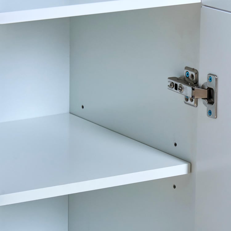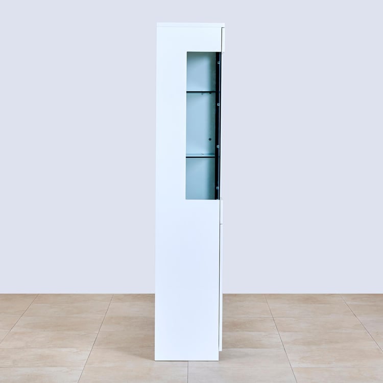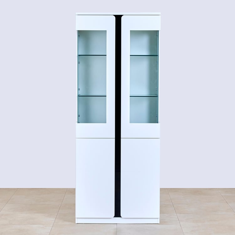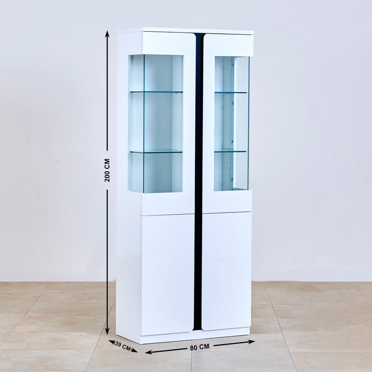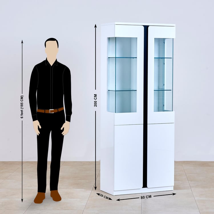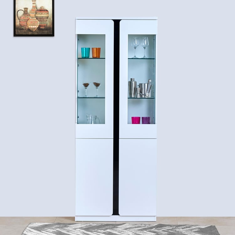 Constructed from engineered wood, this cabinet curio boasting a high gloss finish helps you create the perfect bar setup in your home. It is designed with display shelves with doors made of thermally processed tempered glass that is resistant to scratches and impacts.