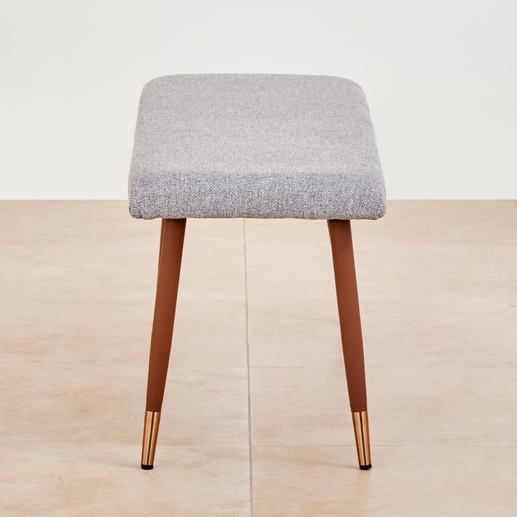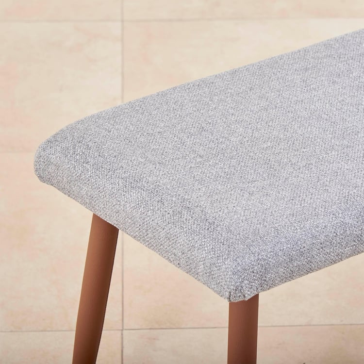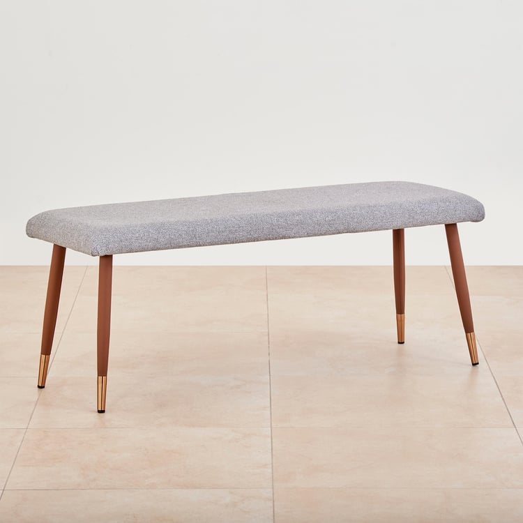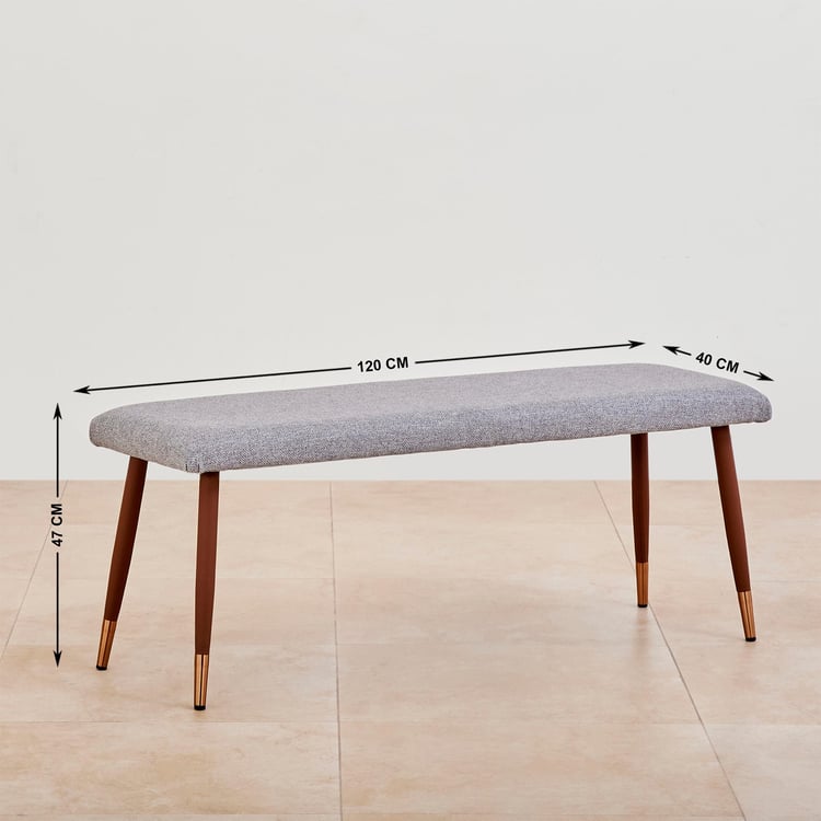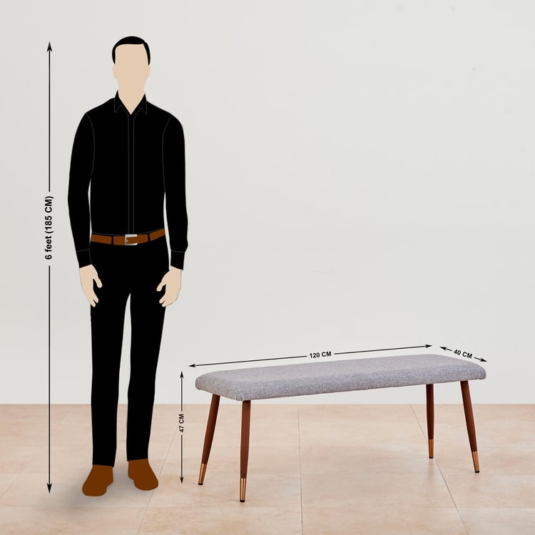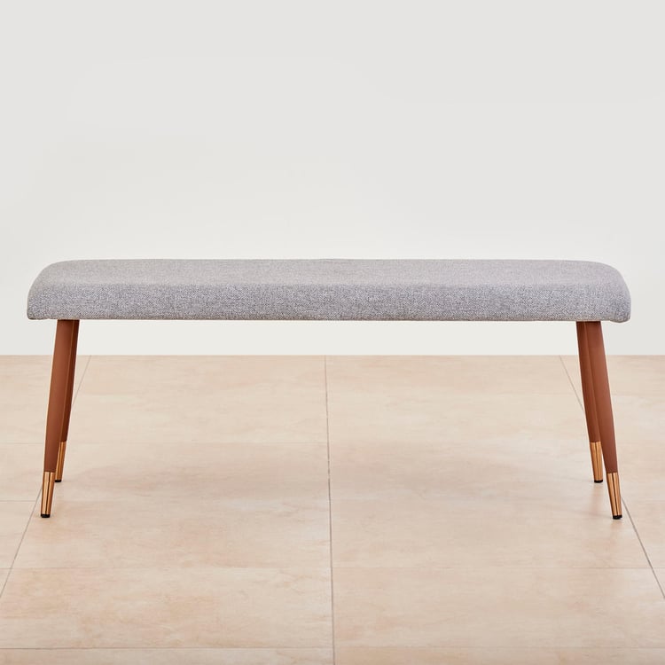Upgrade your dining space with this dining bench that boats a polyester upholstered cushioned seat for enhanced comfort. The legs are made from mile steel and upholstered in faux leather to infuse a touch of elegance, while enhancing the durability.