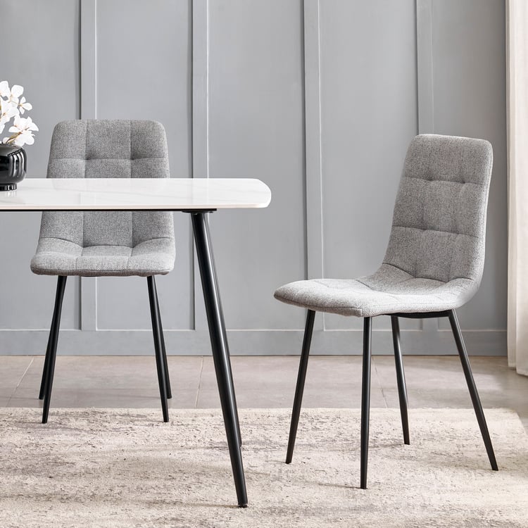 Upgrade your dining space with this set of dining chairs, upholstered in polyester fabric that is anti-microbial, anti-allergic, and easy to maintain. A high-gauge mild steel frame and legs ensure strong load-bearing performance and long-term durability. The medium backrest offers comfortable upright support, and button tufting adds a classic design detail. Safe for daily use, each chair is tested to hold up to 110 kg.