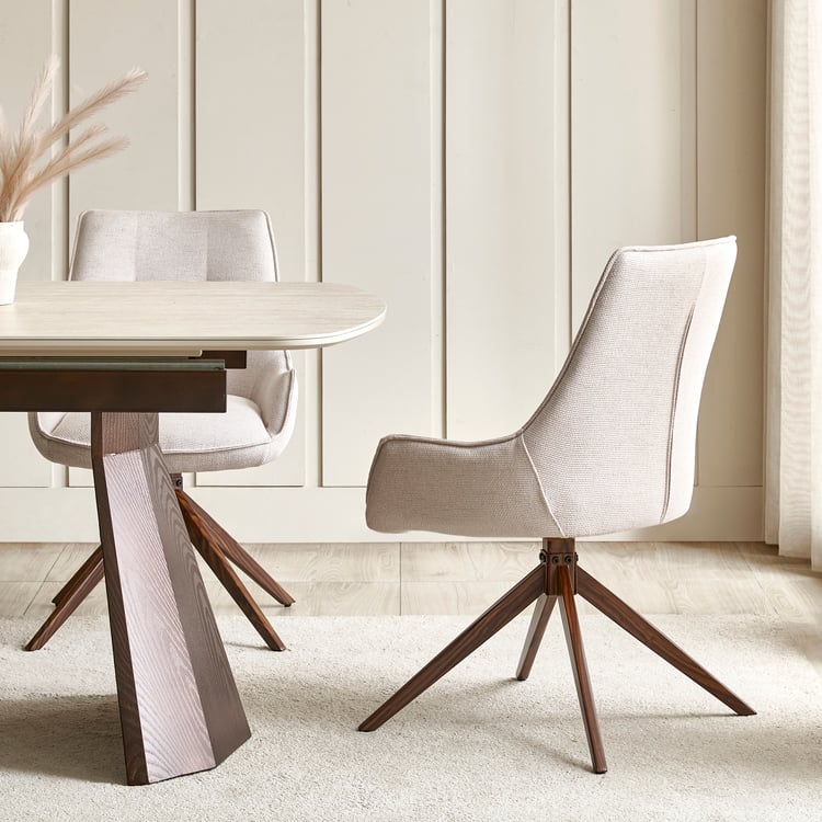 Iris Set of 2 Fabric Swivel Dining Chairs - Beige