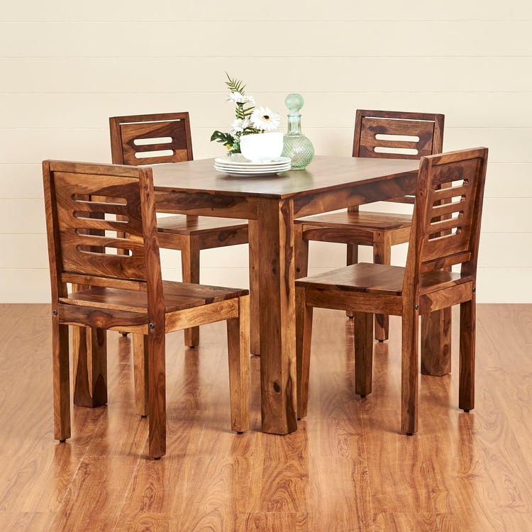 Adana Sheesham Wood 4-Seater Dining Set with Chairs - Brown