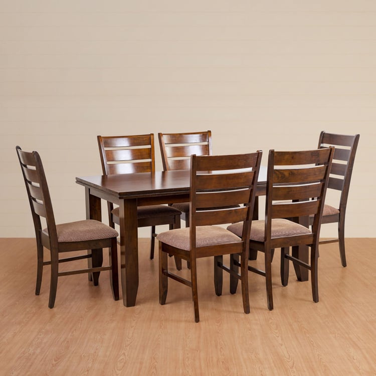Hevea Solid Wood 6-Seater Dining Set with Chairs - Brown