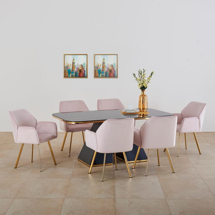 Monarch Glass Top 6-Seater Dining Set with Chairs - Black and Pink