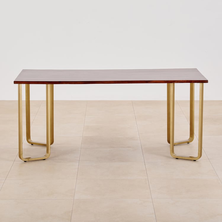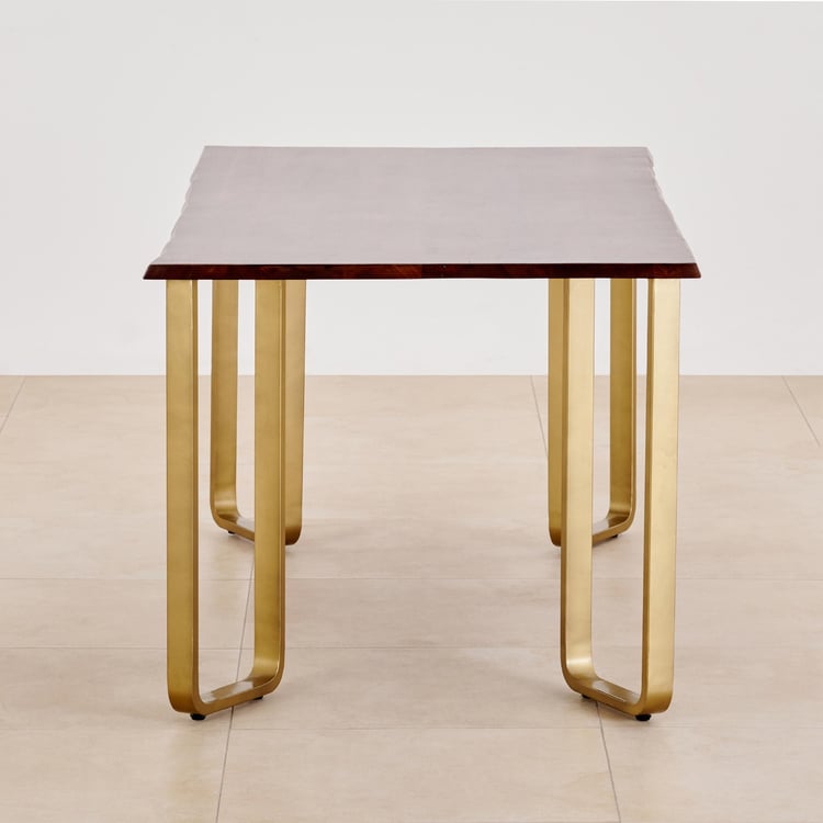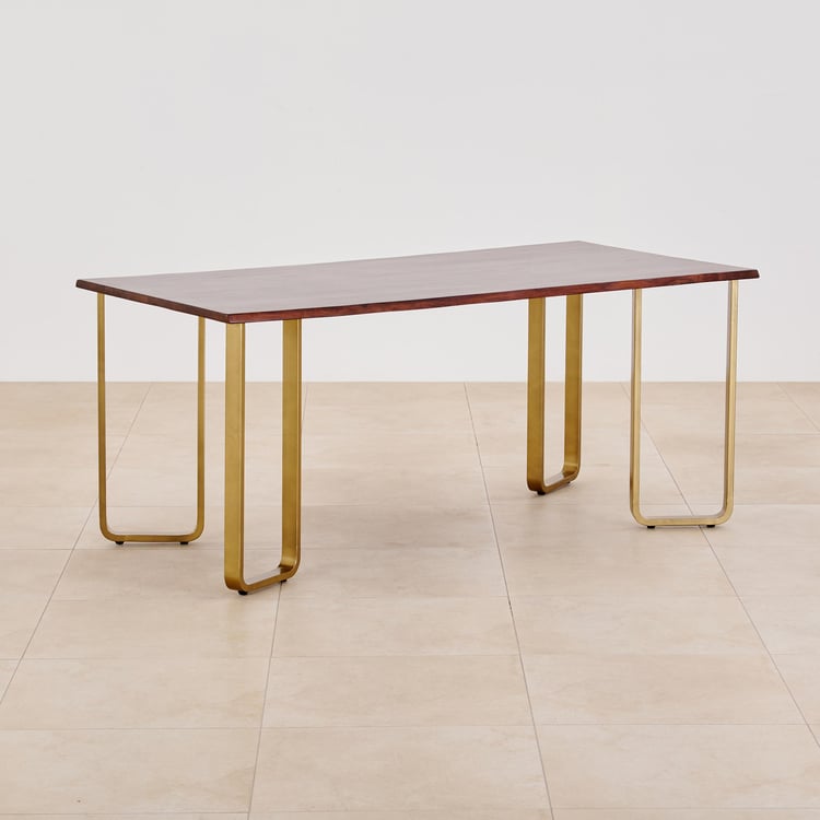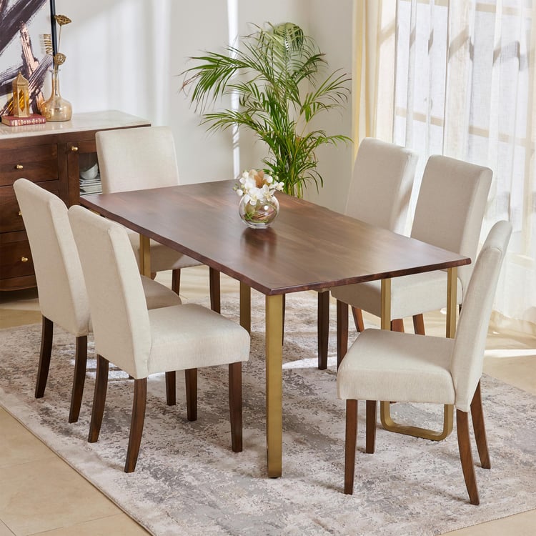 Nirvana Atharva Sheesham Wood 6-Seater Dining Set with Indus Chairs - Brown and Beige
