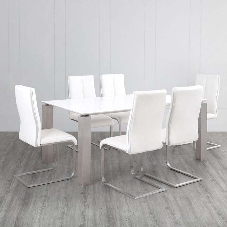 Parlin Glass Top 6-Seater Dining Set with Chairs - White