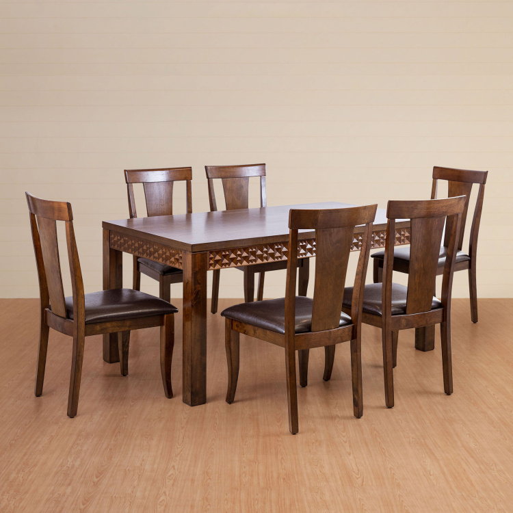 Rio 6-Seater Dining Table Set with 6 Chairs - Brown