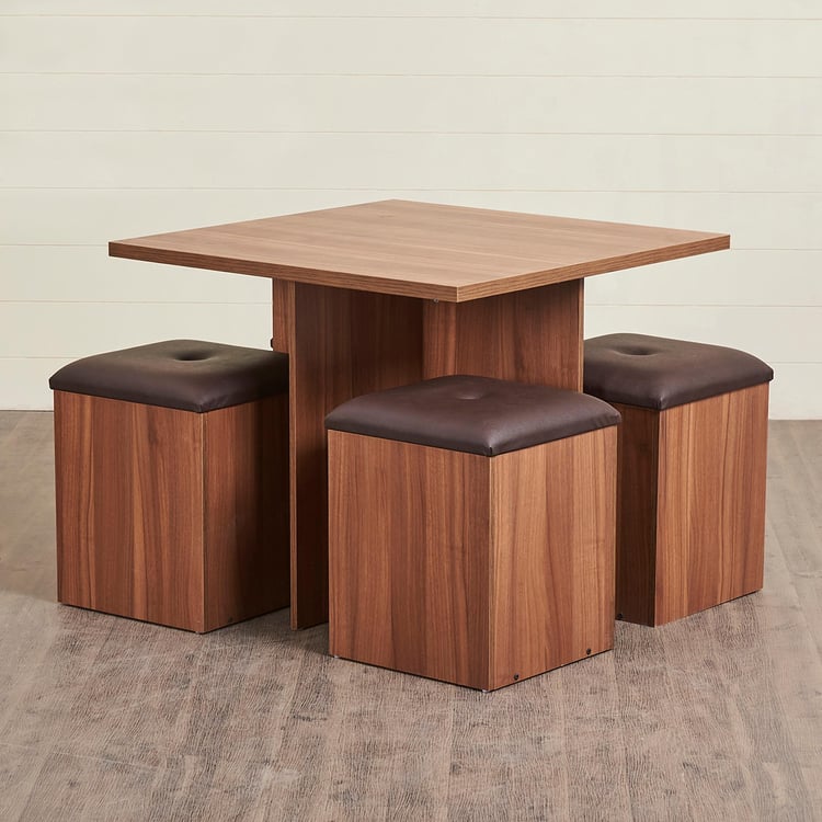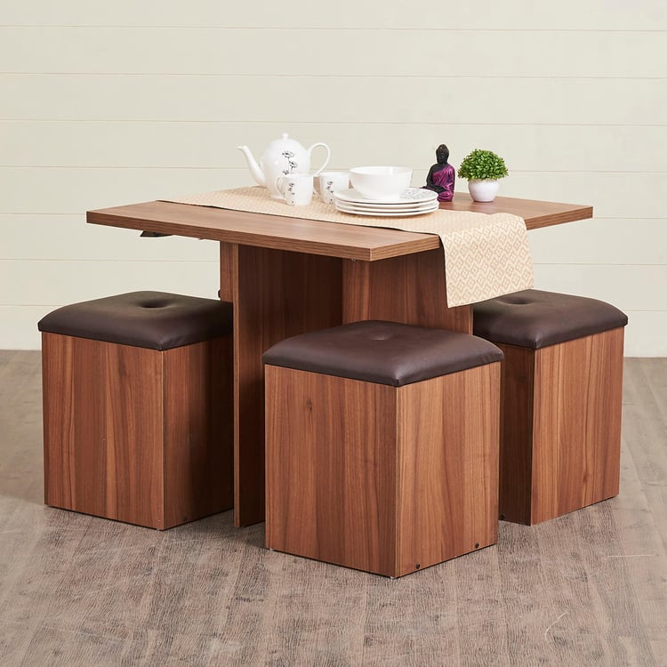 Helios Maine Brown Dining Table And 4 Stool With Storage And Cushion