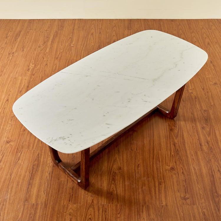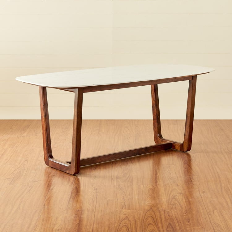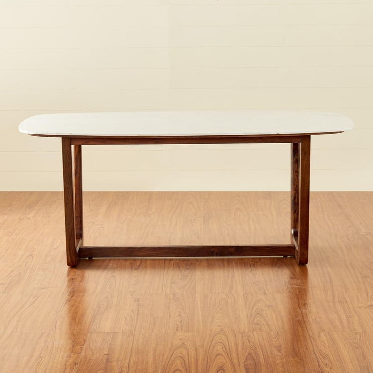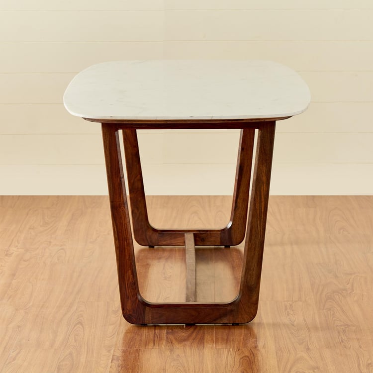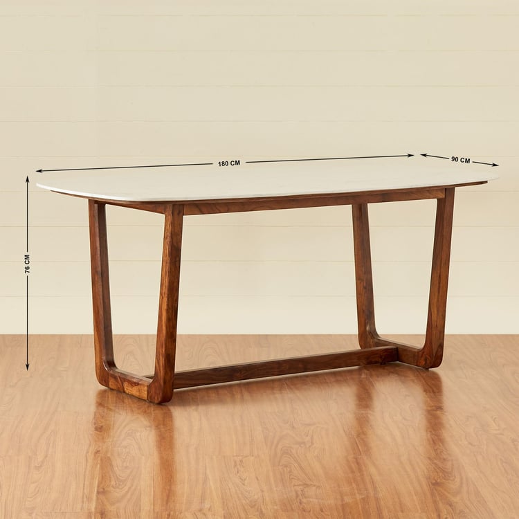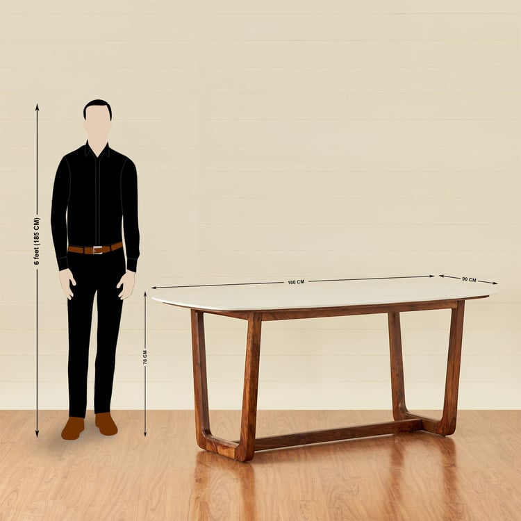 Tabletop: Carefully selected a single slab of real marble without any blemishes for usage on the furniture. Optimally cut and polished to add lustre to the natural patterns on the stone. Heat, scratch & stain resistant, thus easy to maintain over long term usage. Table Base: Sheesham wood includes its durability, versatility, and attractive finish. As a hardwood, Sheesham wood is heavy and dense, and it has good pest and decay resistance. It is also more flexible than teak and many other hardwoods, which means it can be bent without cracking. Sheesham wood is known for its beautiful colors, which make every piece unique. It usually has a straight grain that makes it relatively easy to carve, turn, and glue, and it has a natural lustre and a smooth finish. It sometimes has a slight pleasant fragrance due to the resins trapped in the wood. Finish type - Stain on Solidwood: Solidwood is stained & covered with a protective layer for making the furniture scratch, heat, and stain-resistant helping to increase durability. Treatment type - Formaldehyde resin for lower emission: All panels are pre-treated with industry-standard chemical composition thereby making the core resistant to termite, borer, and other mites. Treatment type - Kiln drying & fumigation: Wood is kiln dried & excess moisture content is removed. This is to ensure warping, cracking of wood, and to improve durability. Wood is fumigated to eradicate borer and termites. Treatment Type - Wood fumigation: Solid wood components are fumigated before and after fabrication to eliminate mites’ infestation. Additional hardware - PVC spacers, levellers: Legs are enabled with built-in PVC spacers to avoid direct contact with the floor, thereby ensuring no direct contact with water, dust etc.,