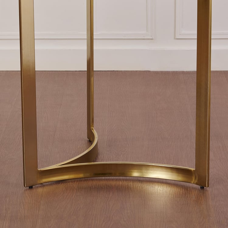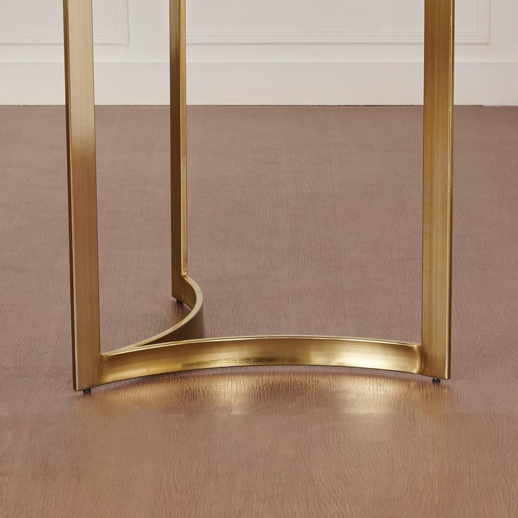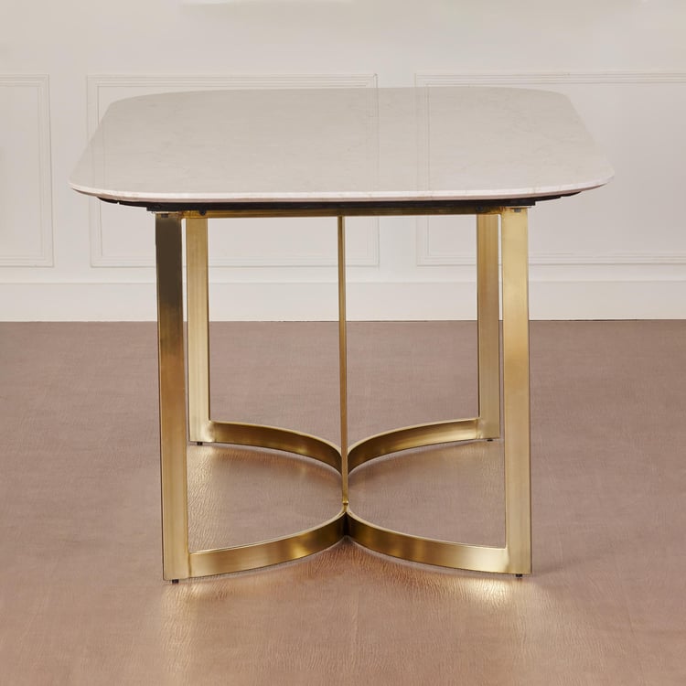 Add a touch of luxury into your daily life with this 6-seater dining table. The range has sleek-looking metal frame structures in gold with a real marble top that appeals to the masses. The combination of white glossy shine and marble textures makes for very peaceful and calm interiors. The natural real marble stone on top which is the primary material is heat, scratch, and stain resistant and thus easy to maintain over long-term usage. The secondary material i.e. Plywood offers all the inherent advantages of the parent wood plus enhanced properties in its laminated structure. Plywood's laminated structure distributes loads from impact over a larger area on the opposite face, which effectively reduces the tensile stress. The cross-laminated construction of plywood ensures that plywood sheets remain relatively stable under changes in temperature and moisture. With high strength and stiffness-to-weight ratios, plywood is very cost-effective to use in structural applications. The legs are made from MS metal frames that are highly cost-effective, recyclable material which provides excellent durability and load-bearing capacity. They are ductile and weldable for varying sizes and shapes of design.