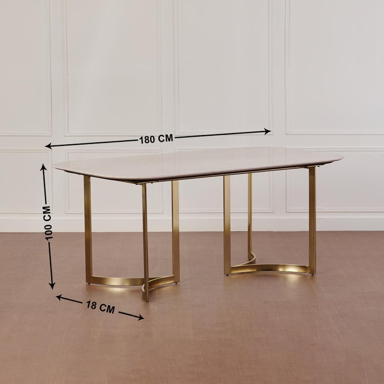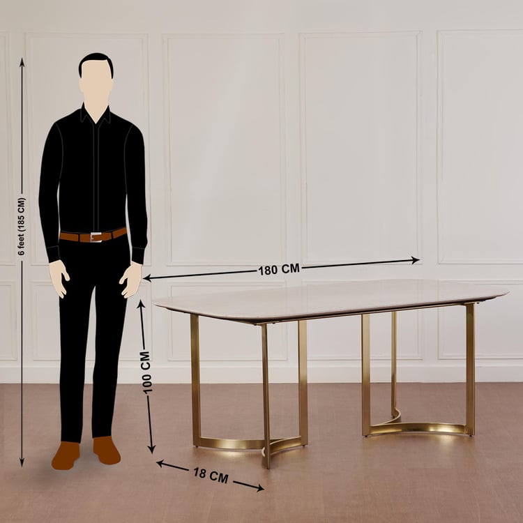 Vogue Cara Botachino Marble Top 6-Seater Dining Table - Beige