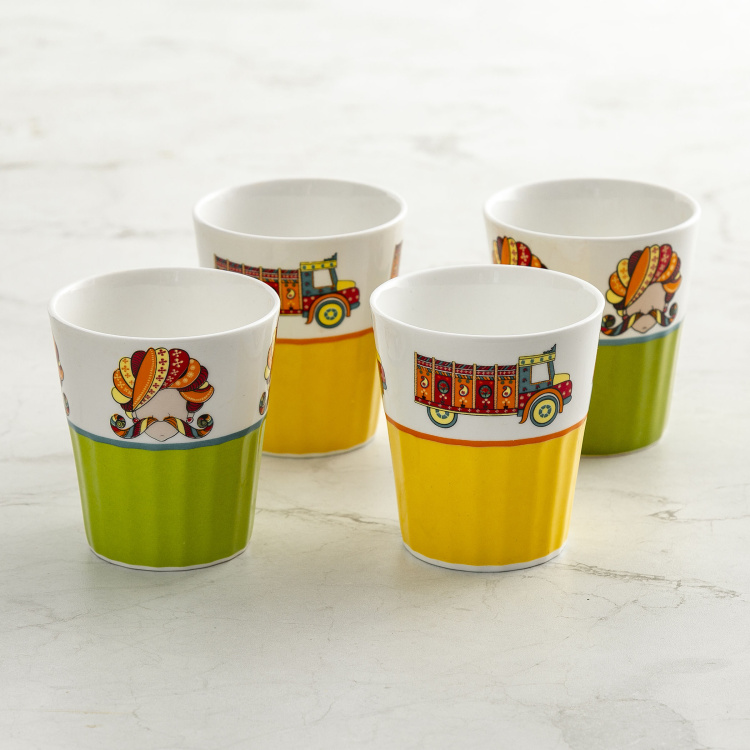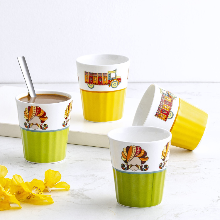 Fiesta Carson Printed Cutting Chai Cup Set - Set of 4 - 160 ml