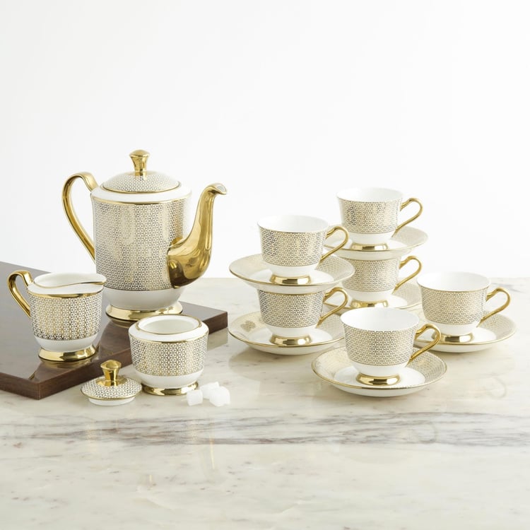 Marina Bone Chine Printed 15-Piece Tea Coffee Set