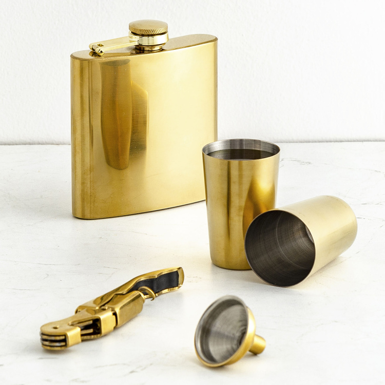 1 Hip Flask, 2 Shot Glasses,1 Funnel,1 Corkscrew