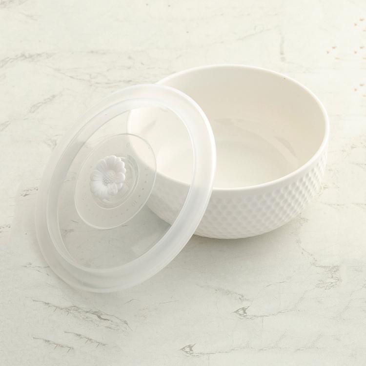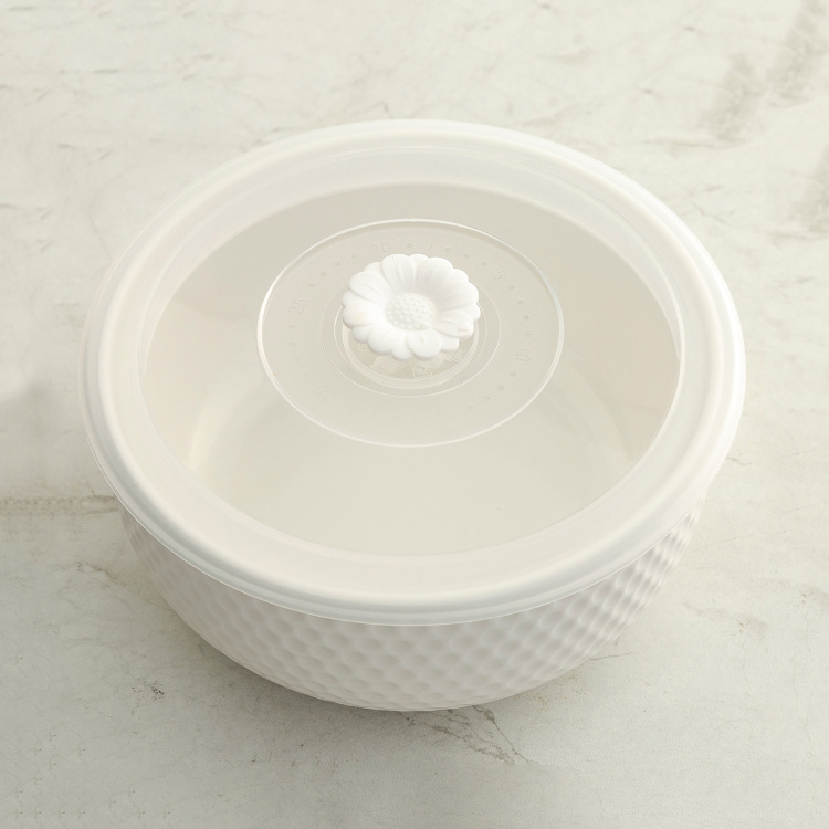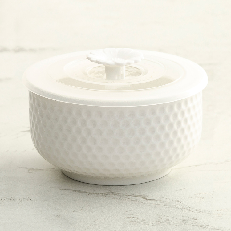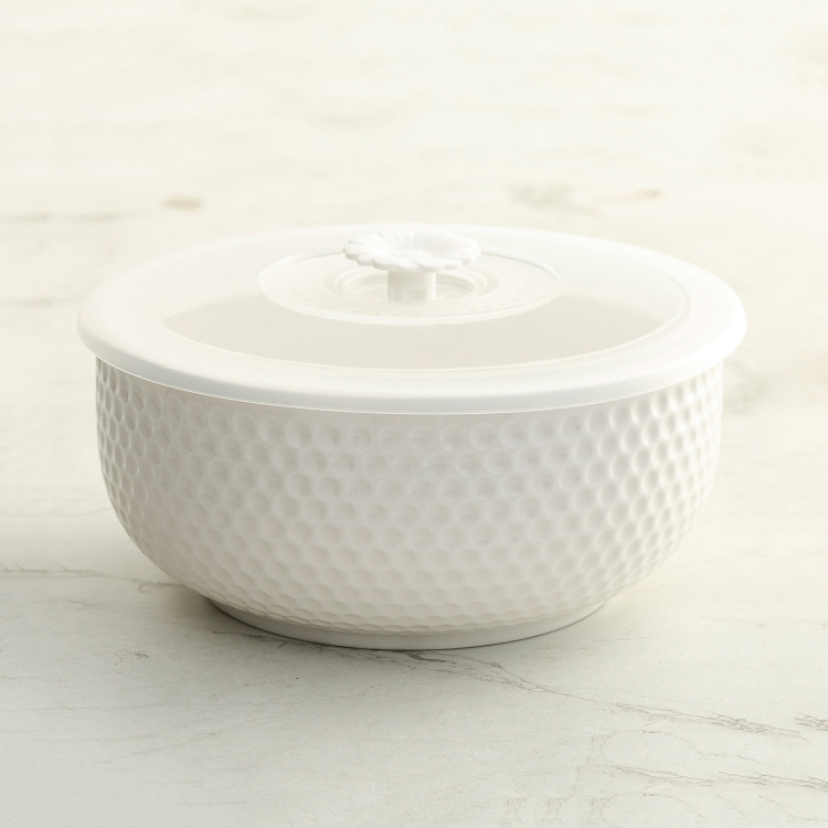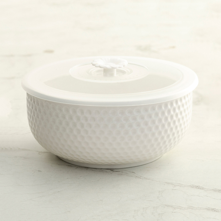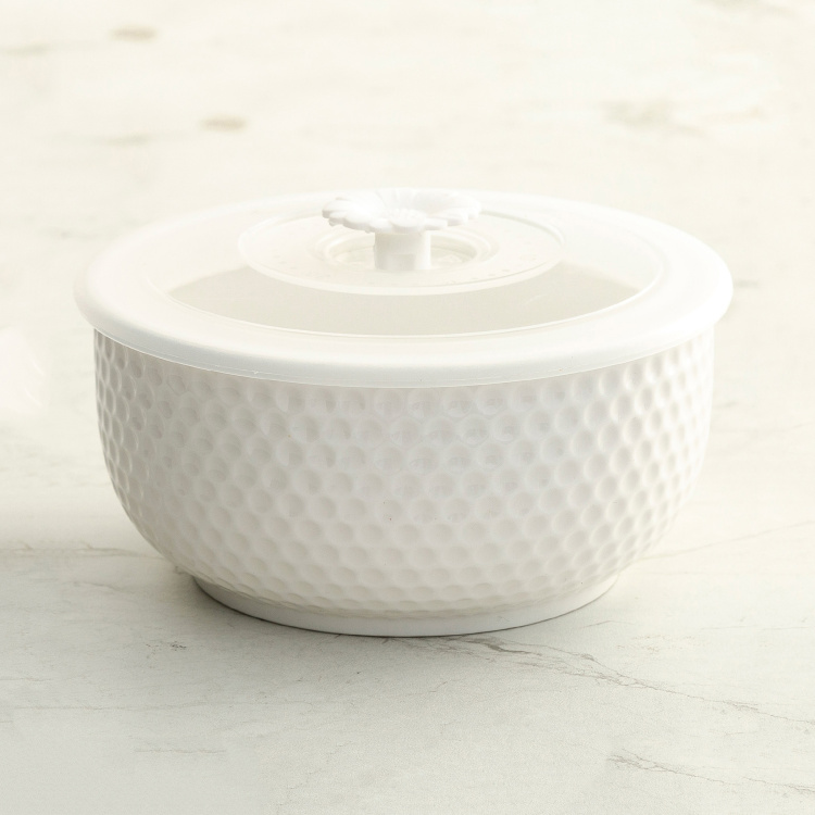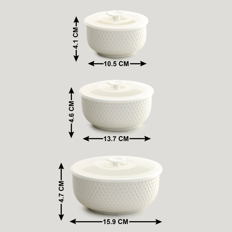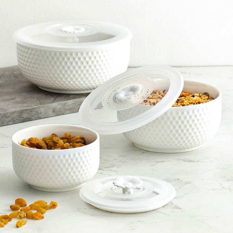 The minimalistic look and contemporary charm teamed with a textured design make this serving bowl a great way to serve scrumptious dishes on the dining table. Available in a set of three, it comes with dedicated lids and can be used for family gatherings or when there are guests around.