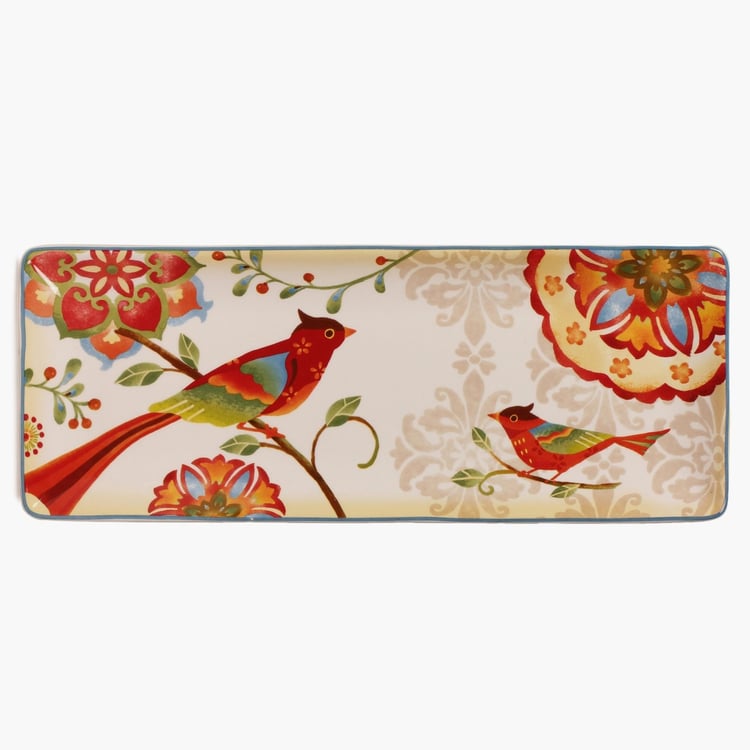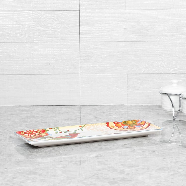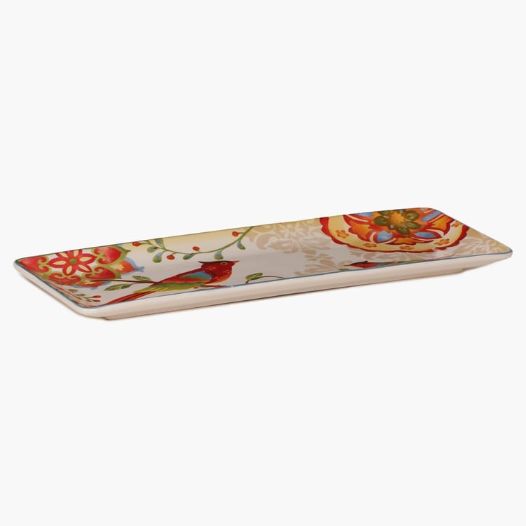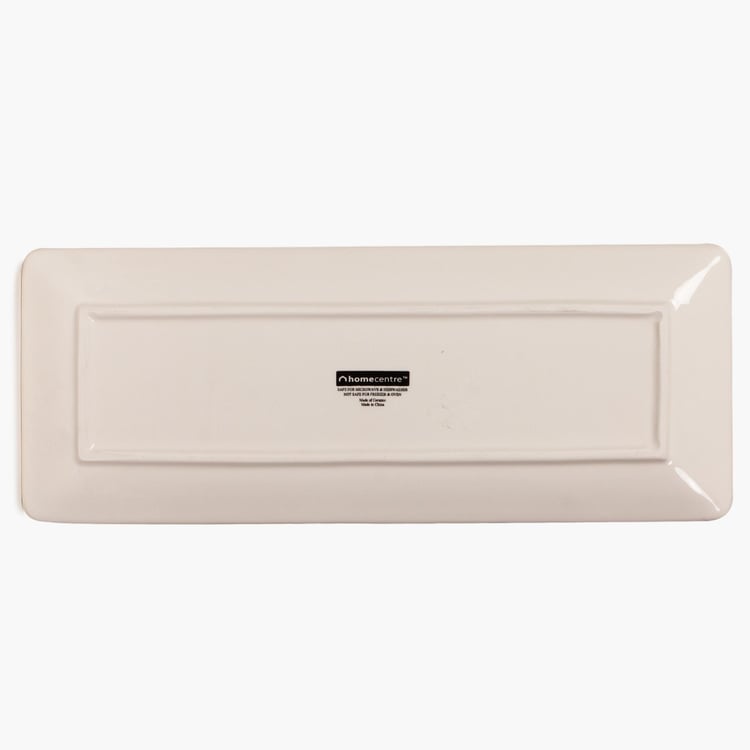 Embossed with a penchant print and composed of ceramic, this Rectangular Platter makes for a fine addition to your crockery array.