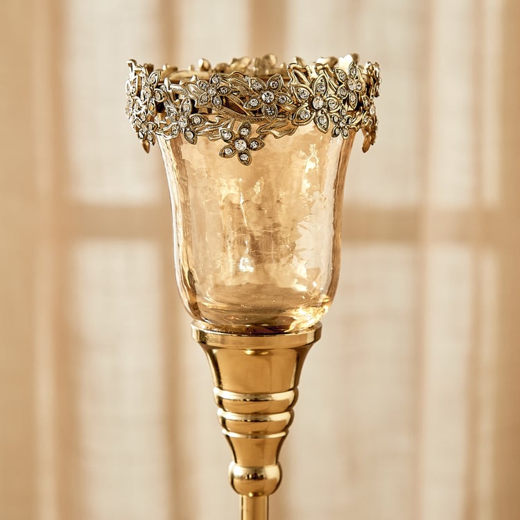 Enhance your home decor with this exquisite pedestal votive holder, crafted with hammered glass and a metal frame. A necessary addition to your decor collection, this candle holder boasts an alluring design that serves as an ideal decorative accent for your living space.
