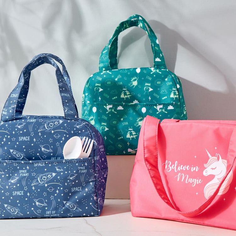 Get ready to head back to school in style with this vibrant, eye-catching printed polyester lunch bag. Designed for durability and ease of cleaning, this versatile bag is perfect for school, work, picnics, or travel. Featuring a fun and stylish printed design, it adds a touch of personality to your daily routine. Complete your ensemble with matching lunch boxes and water bottles for a coordinated look. Stay organised and make a statement as you gear up for the new school year with this durable and fashionable lunch bag.