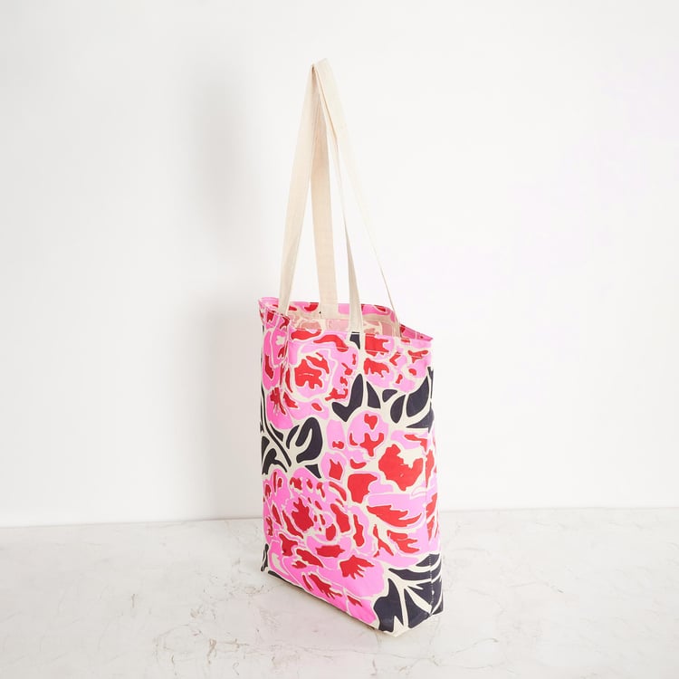 Carry your shopping essentials in this classic tote bag. Designed into a printed look, this tote bag has a spacious compartment along with a dual flat strap detail that makes it the perfect carry-all accessory for daytime outings.