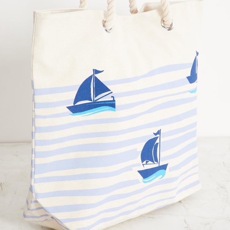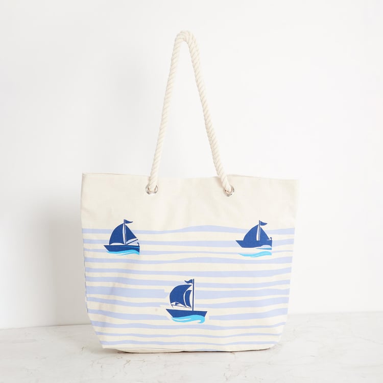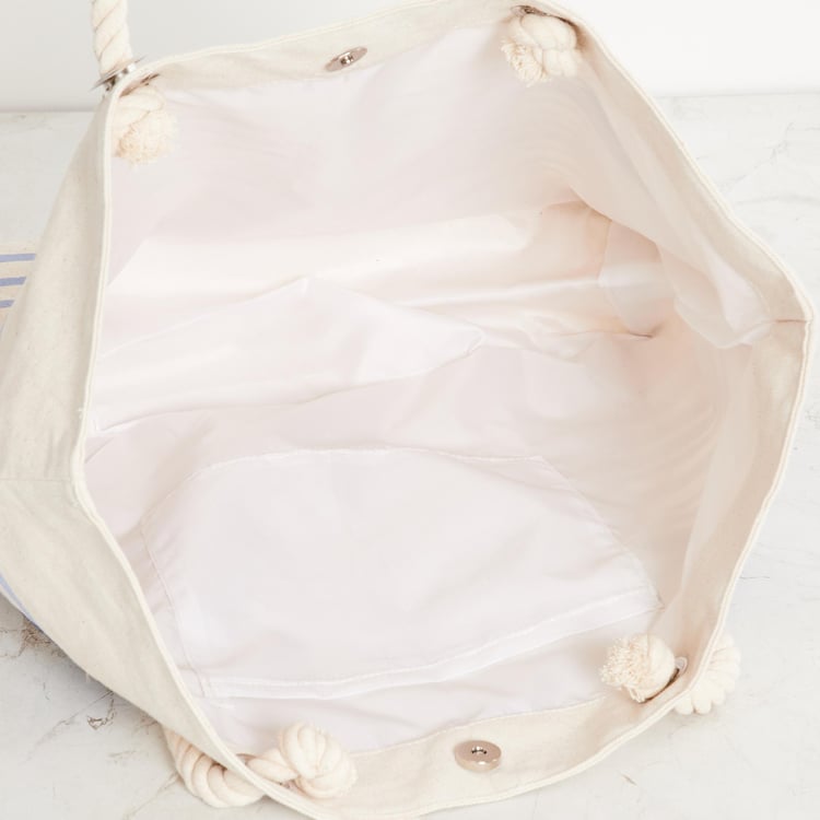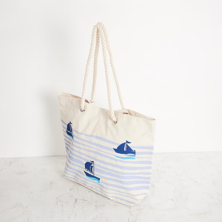 Carry your shopping essentials in this classic tote bag. Designed into a printed look, this tote bag has a spacious compartment along with a dual rolled-rope strap detail that makes it the perfect carry-all accessory for daytime outings.