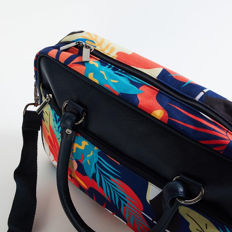 Carry your laptop in style in this bag. It is made of poly canvas and polyurethane fabric, this bag features rolled handles and a detachable strap. It includes a zip top, a laptop compartment with Velcro flap closure and a zip pocket at the front.
