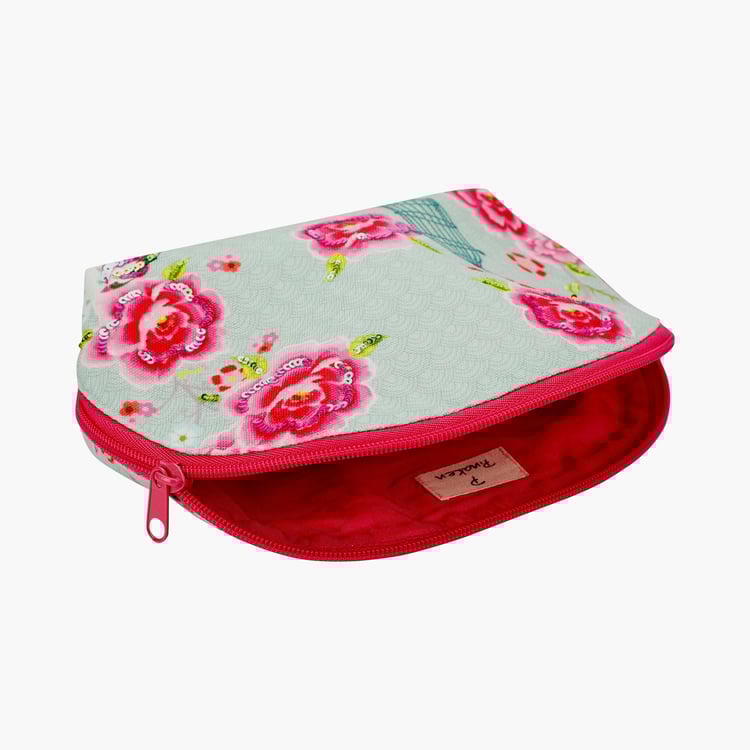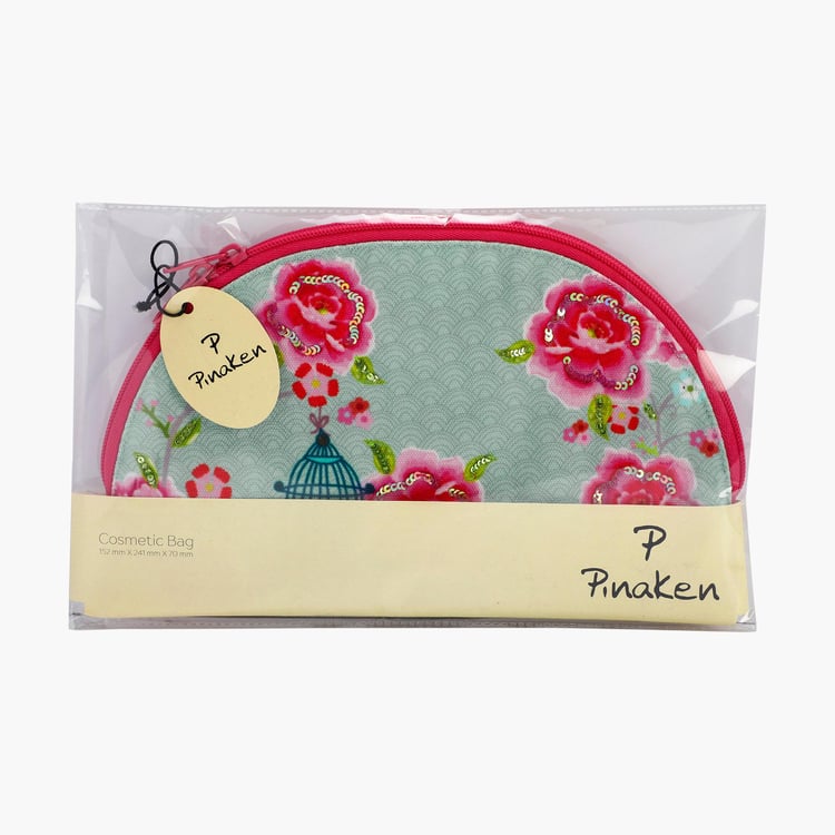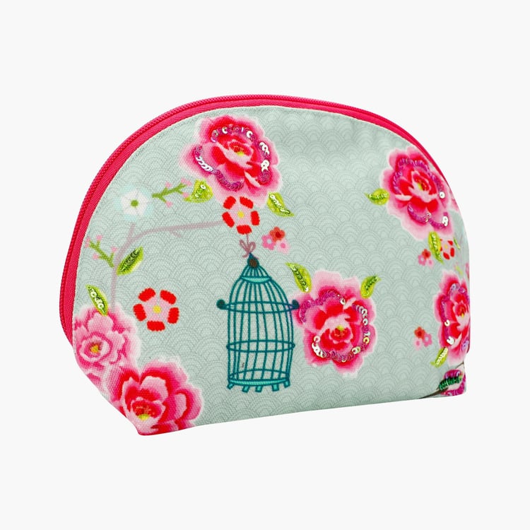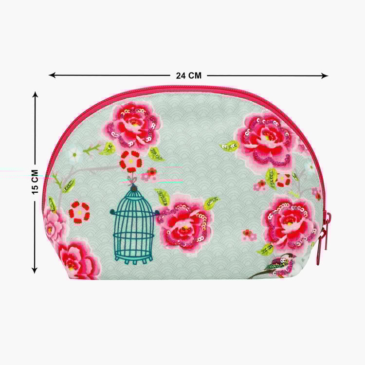 PINAKEN Bird Cage Blue Printed Half Moon Cosmetic Bag
