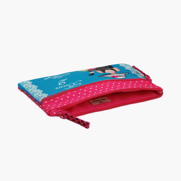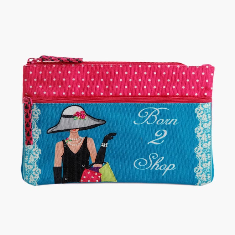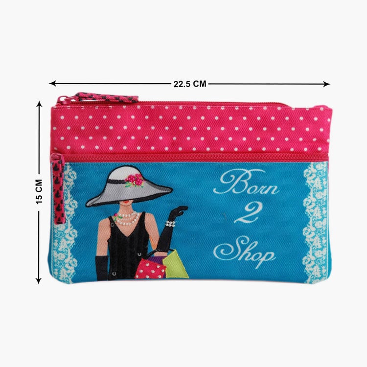 PINAKEN Born To Shop Multicolour Printed Two-Zip Pouch
