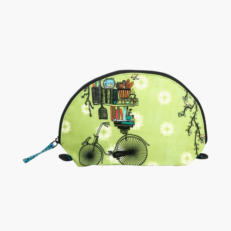 PINAKEN Brain Bridge Cycle Multicolour Printed Half Moon Cosmetic Bag