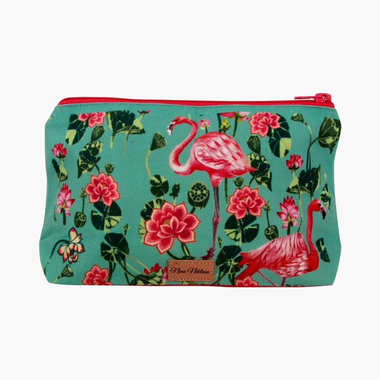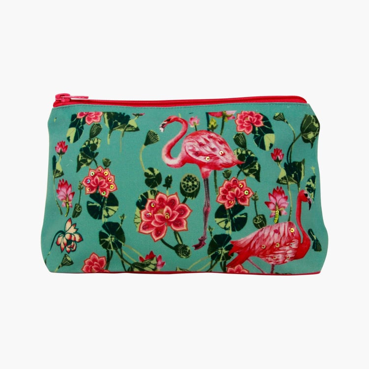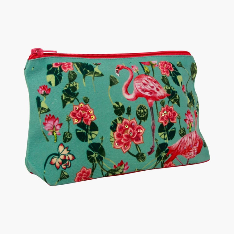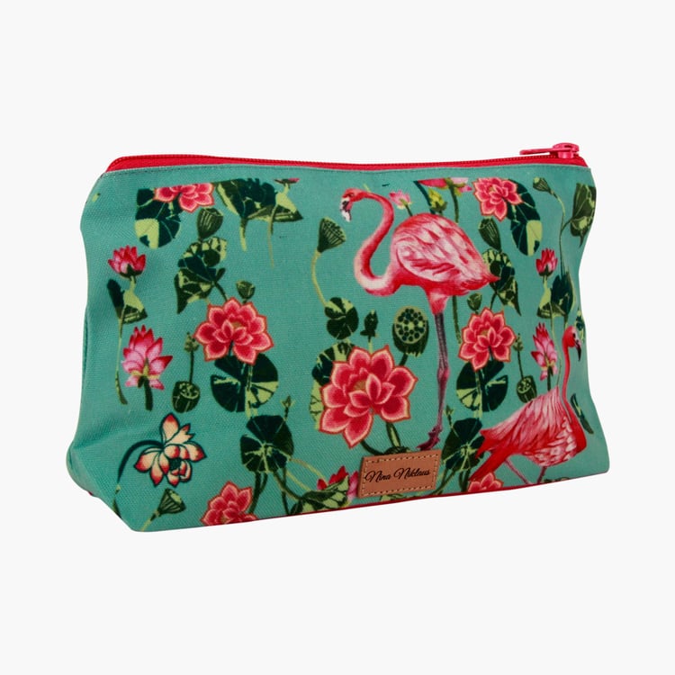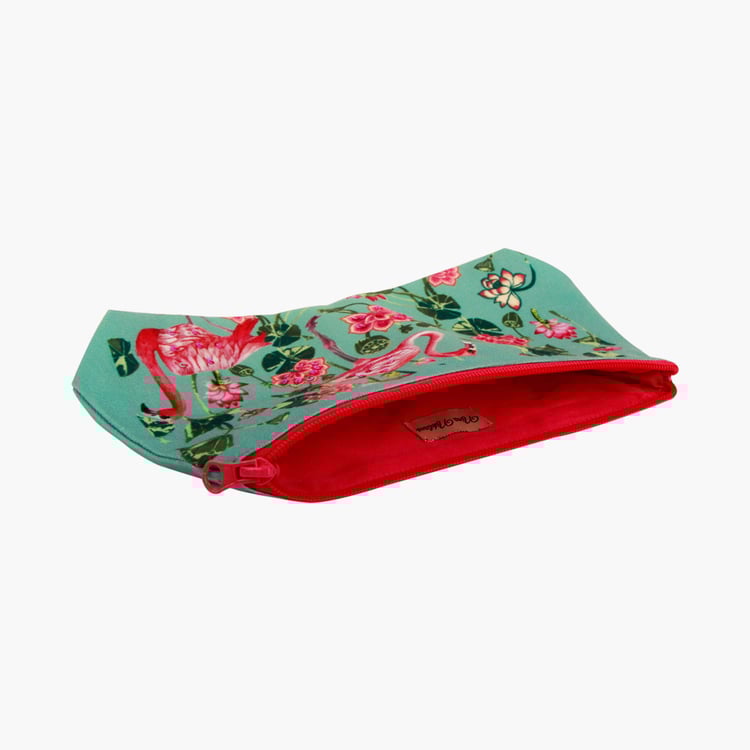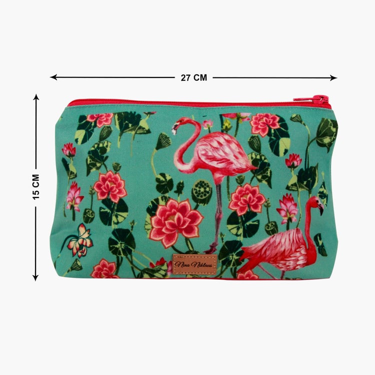 PINAKEN Tropical Flamingo Multicolour Printed Cosmetic Bag - 15x27cm