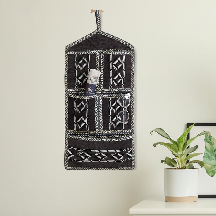 Enhance the style and functionality of your space with this tapestry wall hanging. It is made from polyester and features embroidered motifs for added elegance. It comes with multiple storage pockets that can be used to store magazines, keys, diaries, pens, bills, letters, remotes, and more.