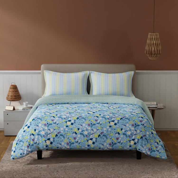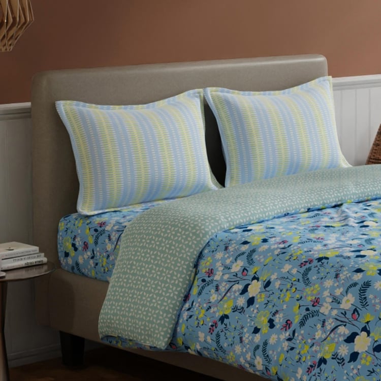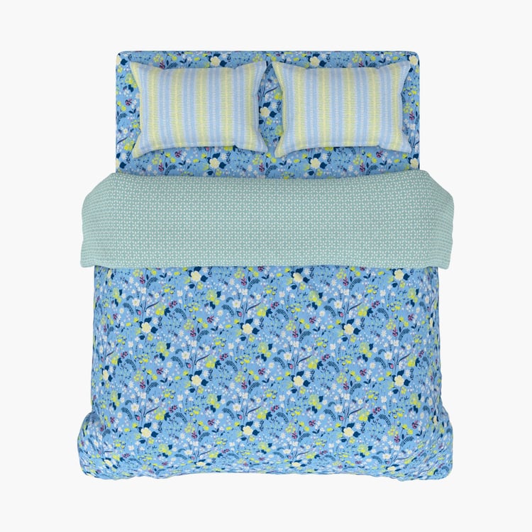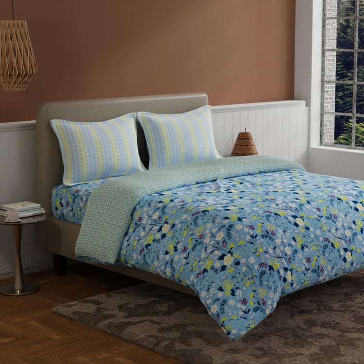 BICHAUNA Amelia Cotton 4Pcs Floral Printed Double Bed-In-A-Bag Set