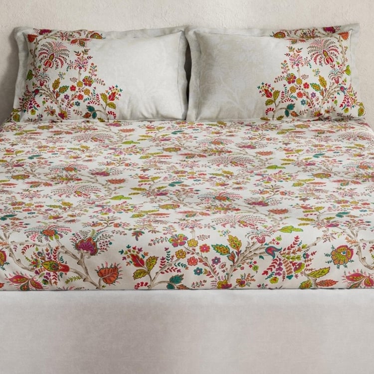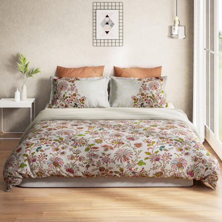 D'DECOR Home Treats Collection Grey Printed Cotton King Bedsheet Set - 254x275cm - 3 Pcs