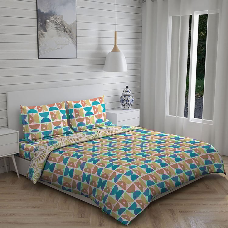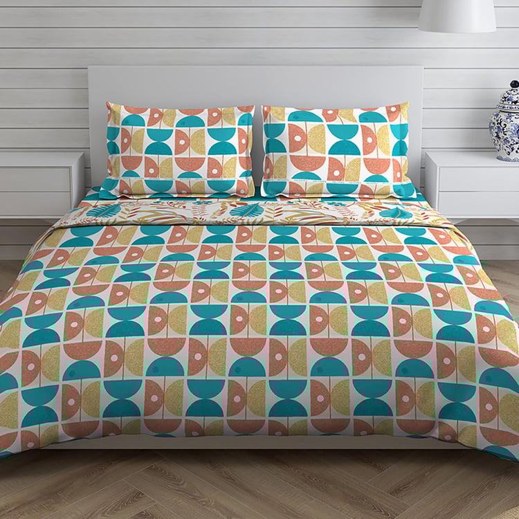 LAYERS Duracount Multicolour Printed Cotton Double Bed-In-A-Bag Set - 4Pcs