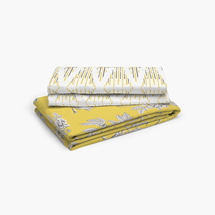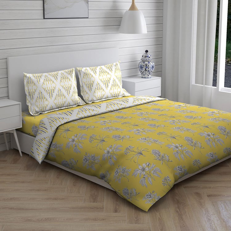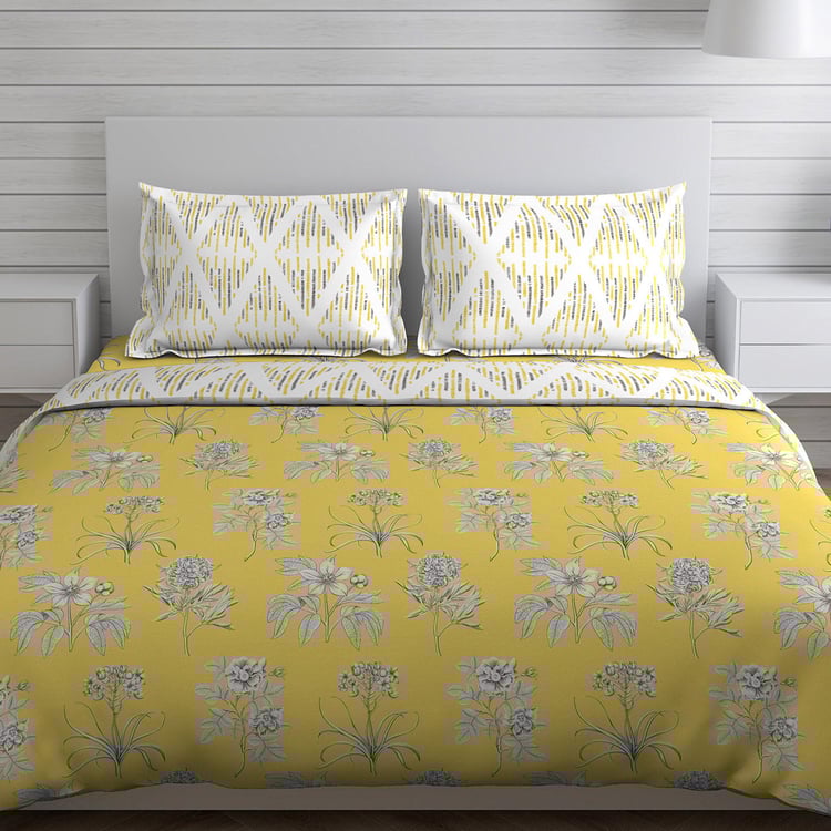 This vibrant and lightweight bed-in-a-bag set of four pieces is defined by a modish print on the surface to impart a fresh appeal to your bedroom decor. Crafted from 100% premium cotton for an extra soft touch and feel, it includes a double bedsheet with a pair of pillow covers and a comforter, featuring similar prints, to create an eclectic mix of comfort and style.
