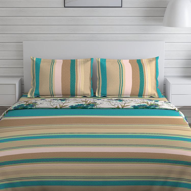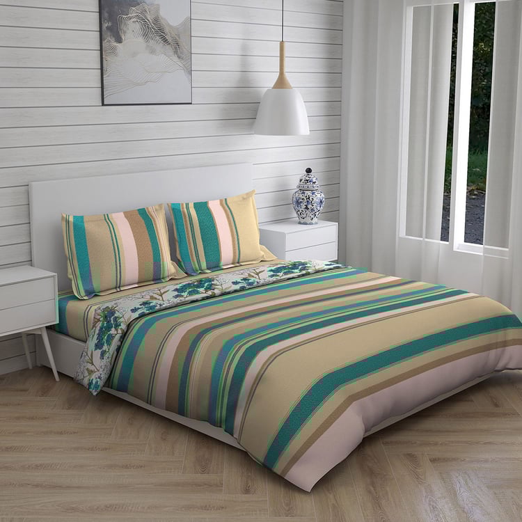 LAYERS Milano Multicolour Striped Cotton Double Bed-In-A-Bag Set - 4Pcs