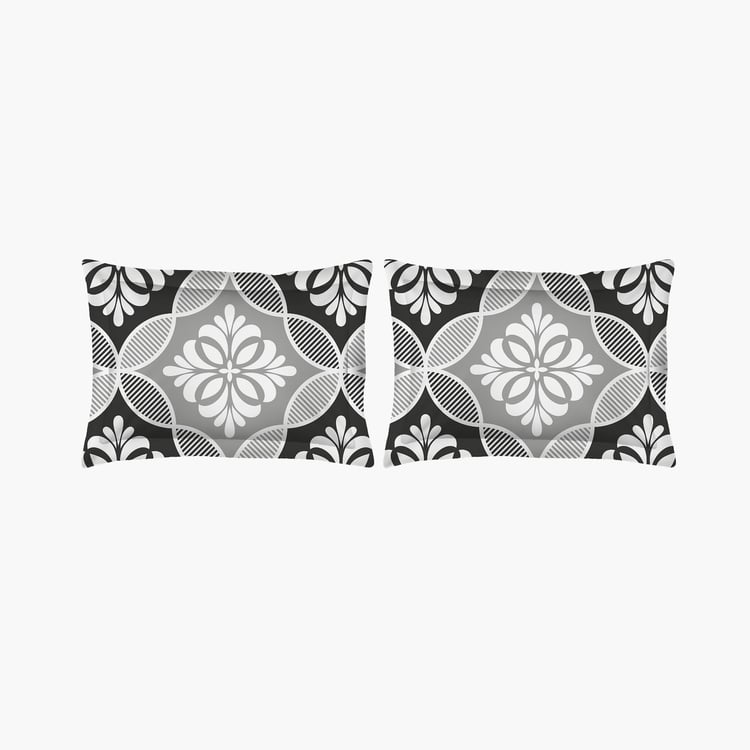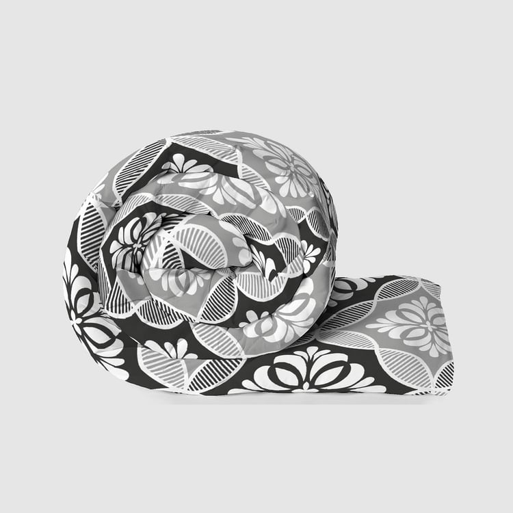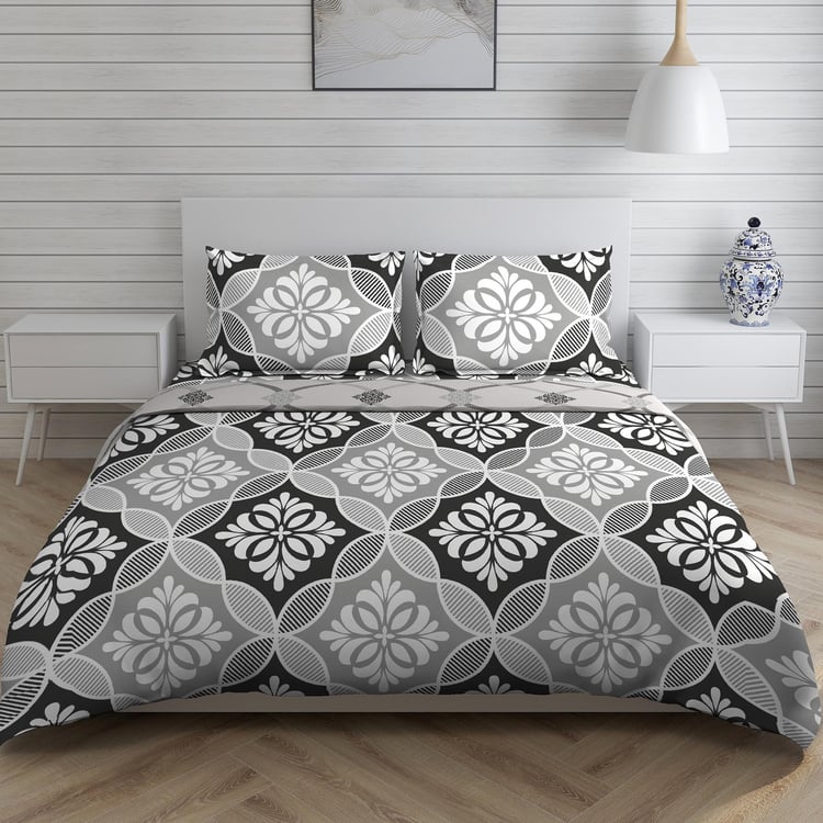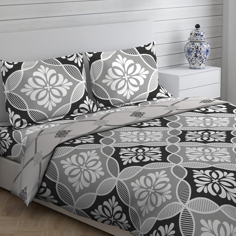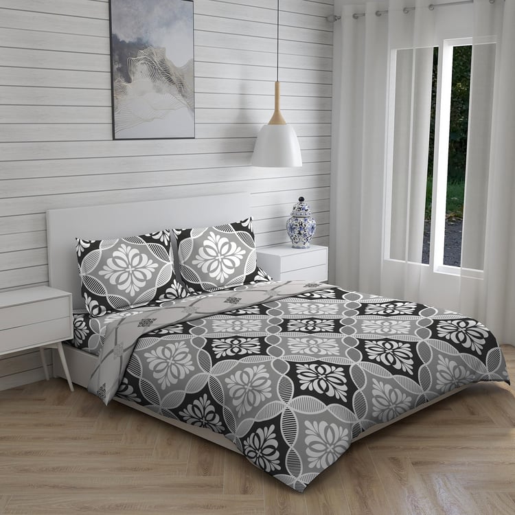LAYERS Pistoia Grey Printed Cotton King Size Bed-In-A-Bag Set - 4Pcs