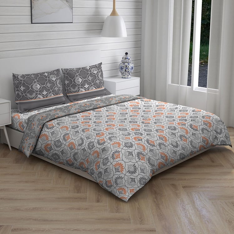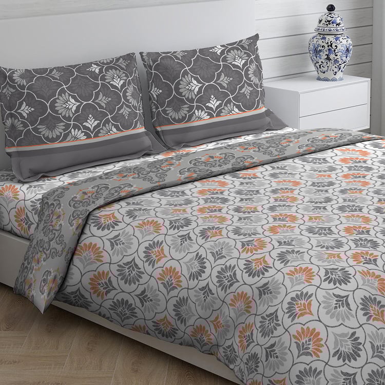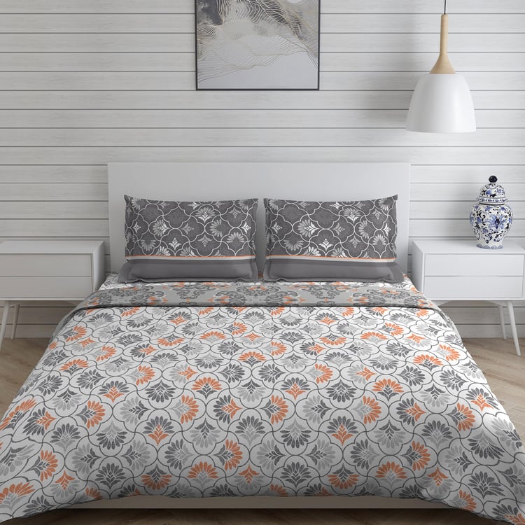 LAYERS Siena Grey Printed Cotton King-Size Bed-in-Bag Set - 4Pcs