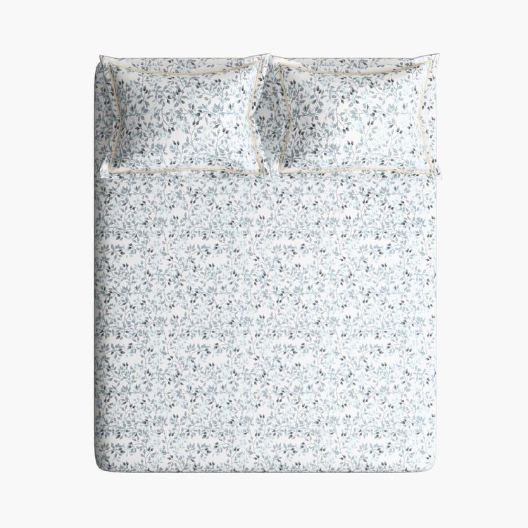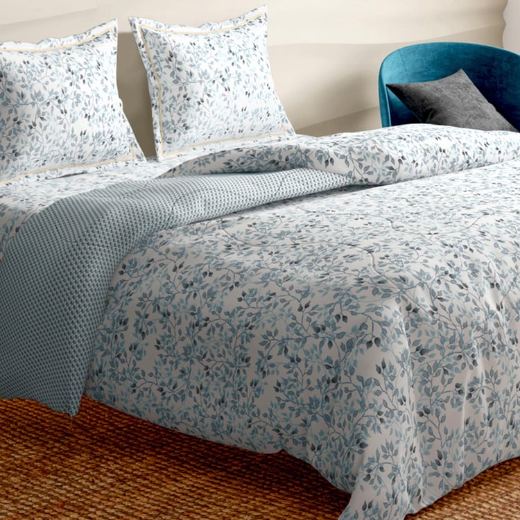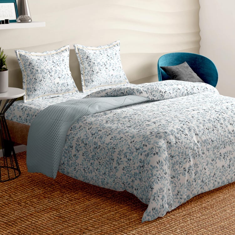 PORTICO Melange White Floral Printed Cotton Queen Bed in a Bag – 274 x 274 cm - 4 Pcs
