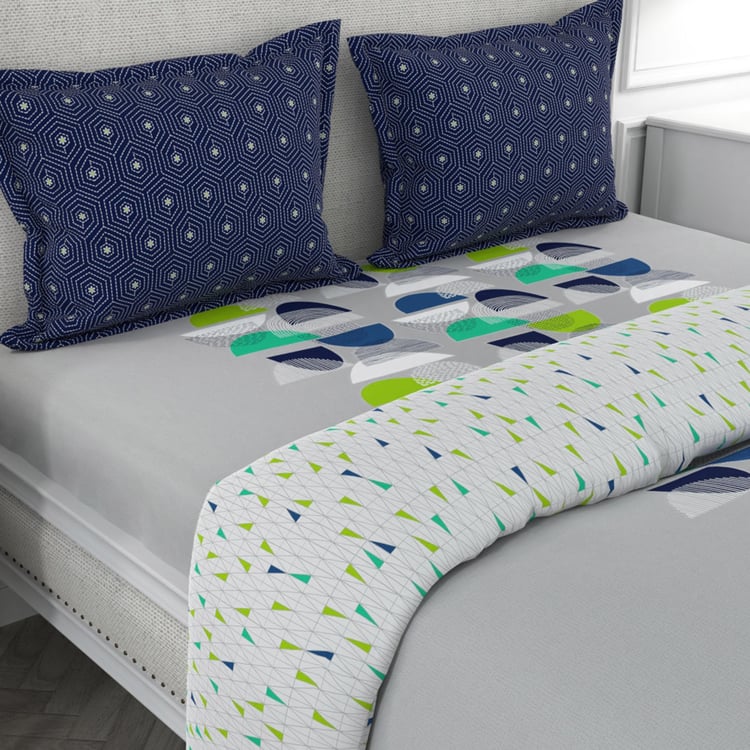 With a gentle spread of prints taking complete ownership for its unique look, this eye-catching set comprising a queen-size bedsheet, comforter, and 2 pillow covers protects your mattress and lets the contemporary aura of your personal space stay intact.