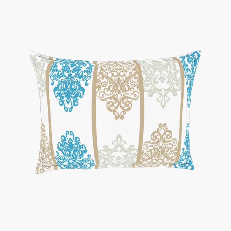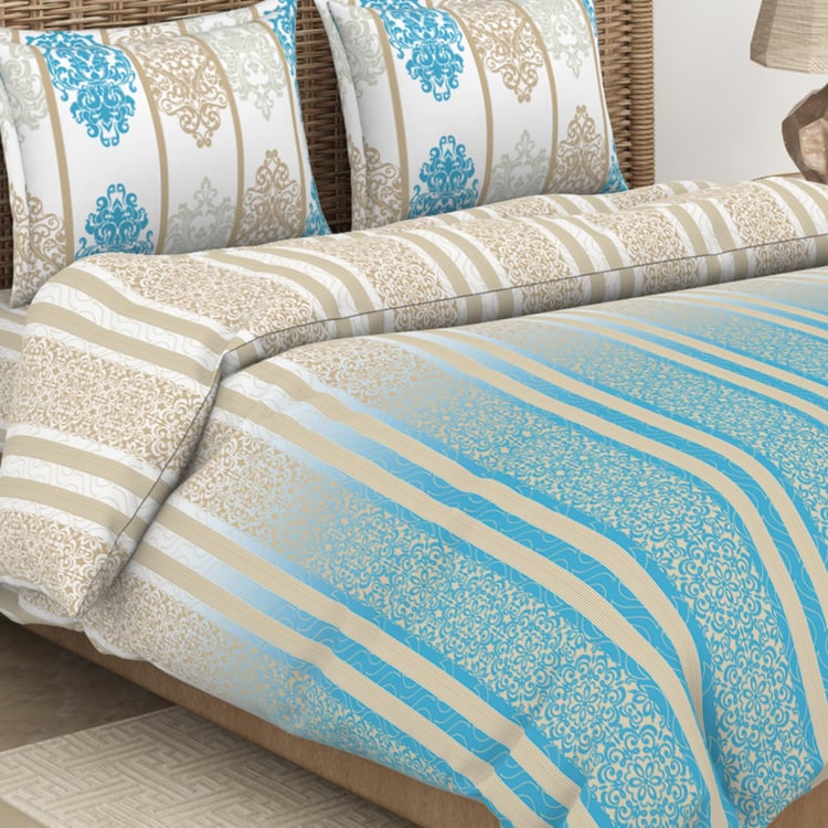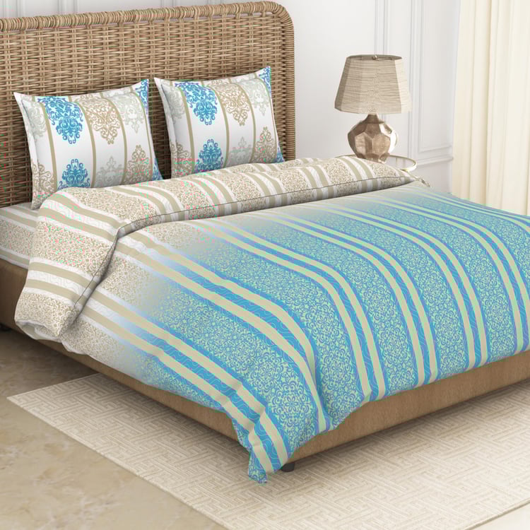 SPACES Adonia Blue Printed Cotton King Size Bed-In-A-Bag Set - 4Pcs
