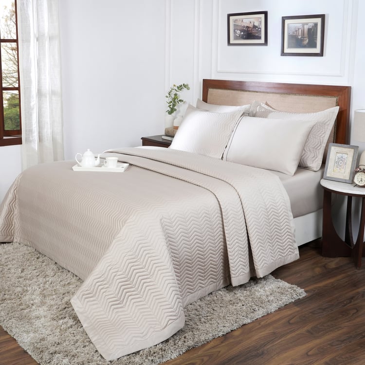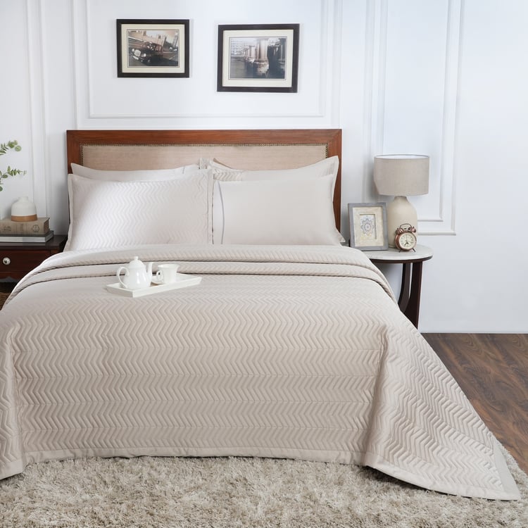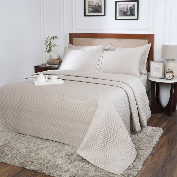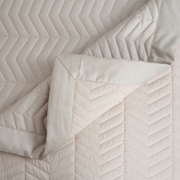Enhance your bedroom with this beautifully crafted double quilt and enjoy the perfect blend of grace and functionality. It is made of cotton with polyester filling to provide cosy comfort. The chevron pattern adds a classic look.