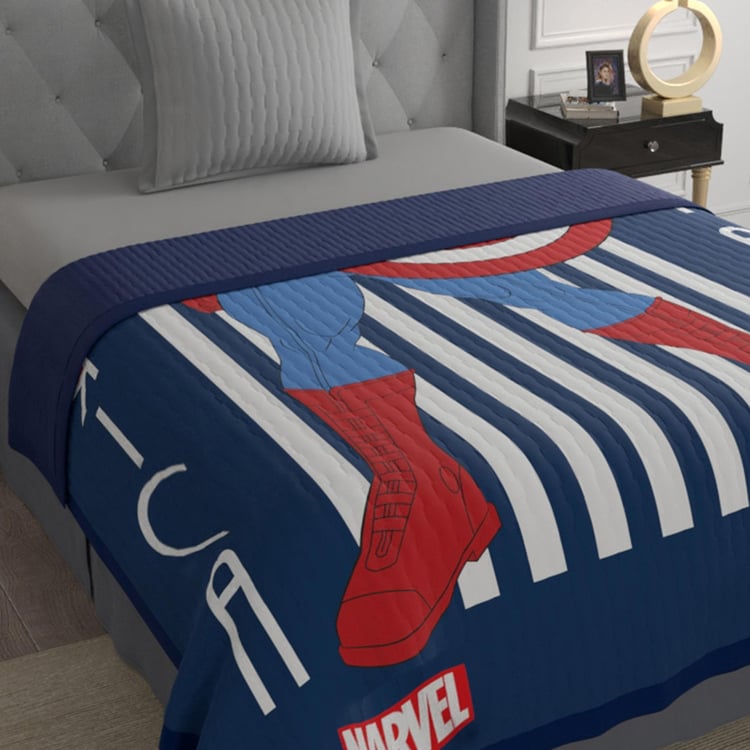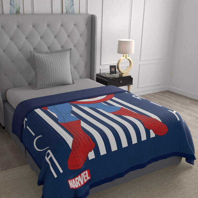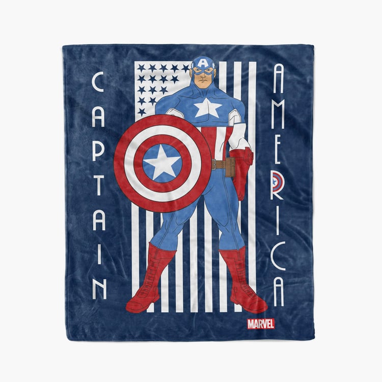 MARVEL Mayra Blue Printed Captain America Flannel Single Bed Blanket - 150x220cm