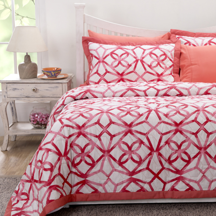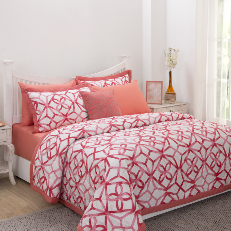 This double-bed quilt blanket is crafted with a dyed effect and soft padding to exude an eye-pleasing look and ensure ample comfort when you hit the bed.