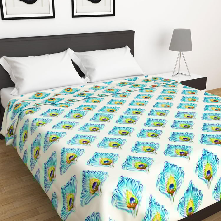 Moksha Feather Print Double Bed Blanket- 200 X 240 cm