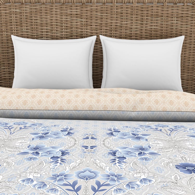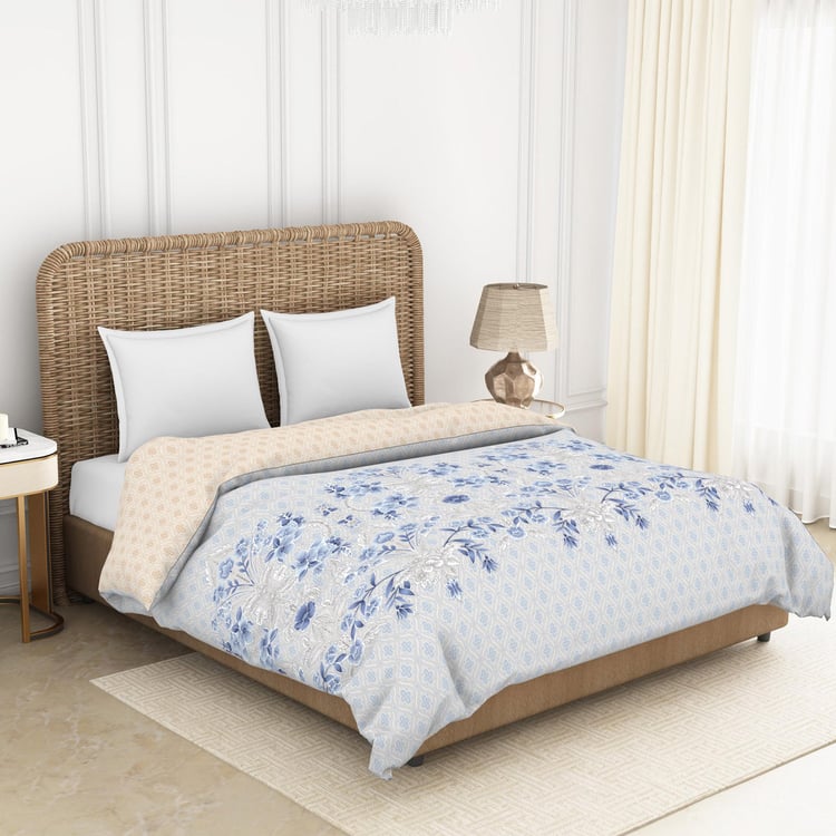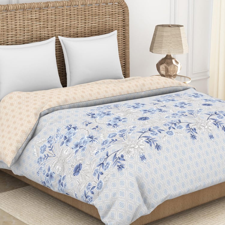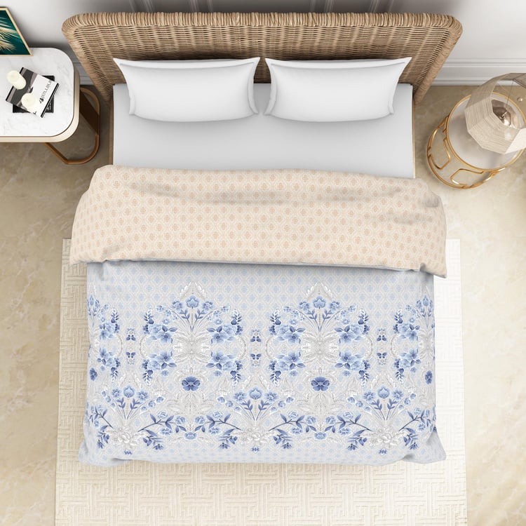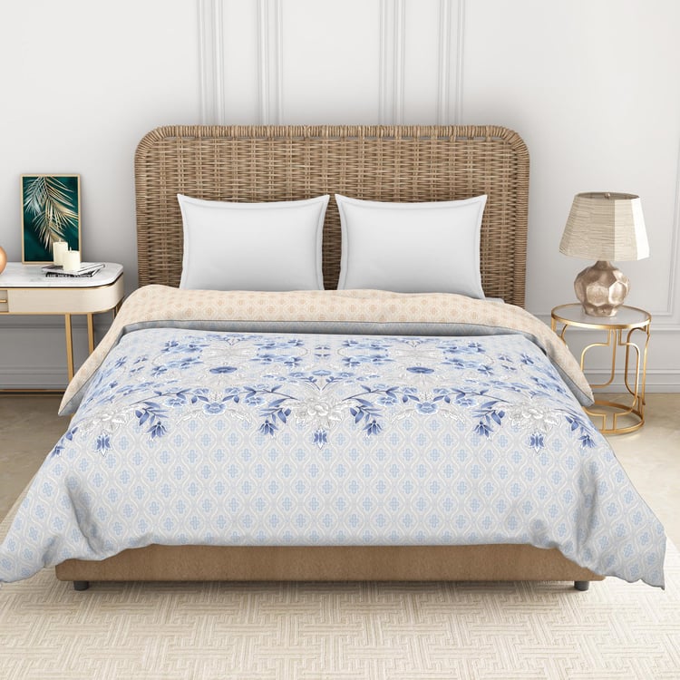SPACES Essentials Blue Printed Cotton Soft Double Quilt - 224x270cm
