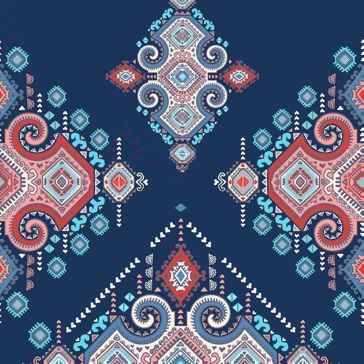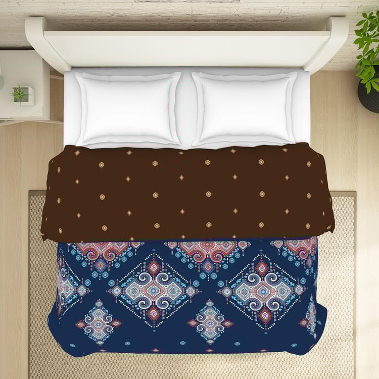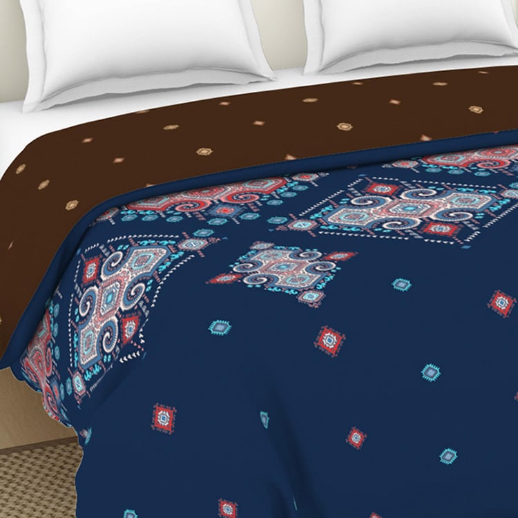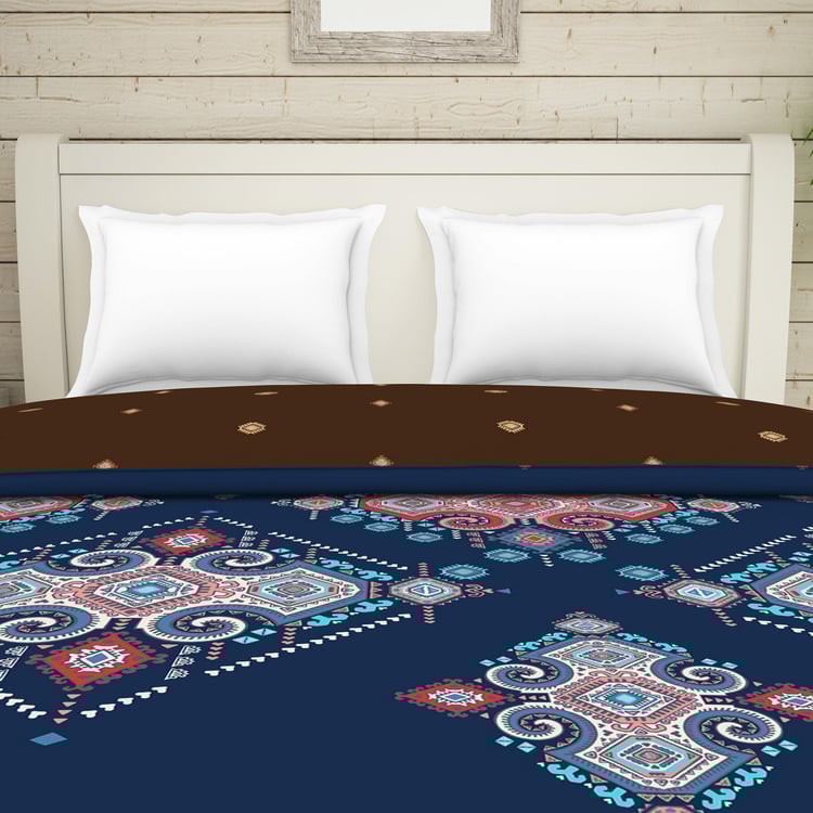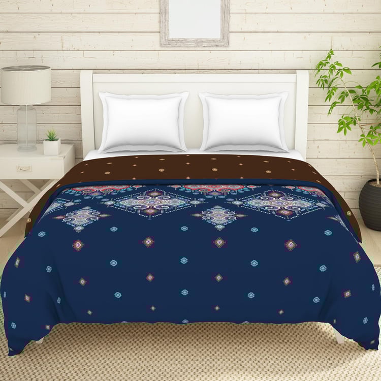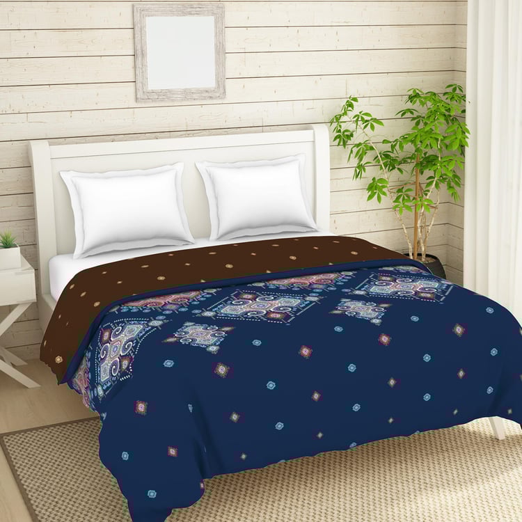 SPACES Essentials Dark Blue Geometric-Print Queen Size Quilt - 274x270cm