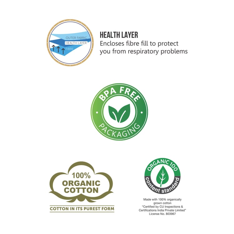 A warm quilt features an eye-catching prints on the surface. The stylish look is accompanied by an abundantly filled interior that adds to the comfort and convenience of this quilt by locking the air and keeping you warm during chilly days. The quilt is tailored from 100% organic cotton, certified by CU Inspections and Certifications India Private Limited. It encloses a fibre-fill health layer that protects you from respiratory problems.